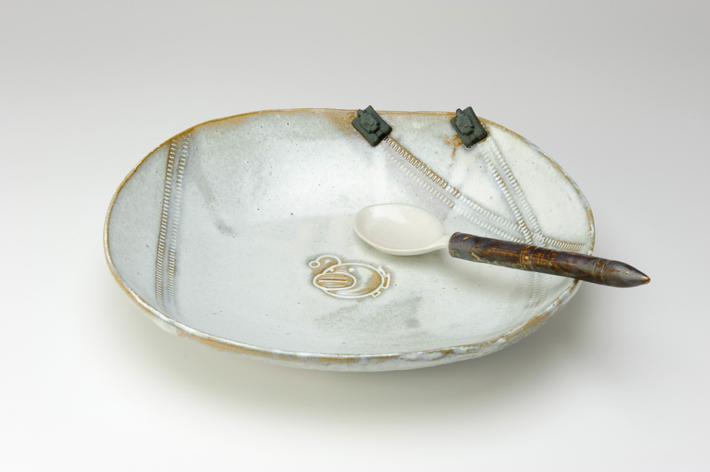 カレーライス用のお皿とスプーンを笠間焼で制作しました。