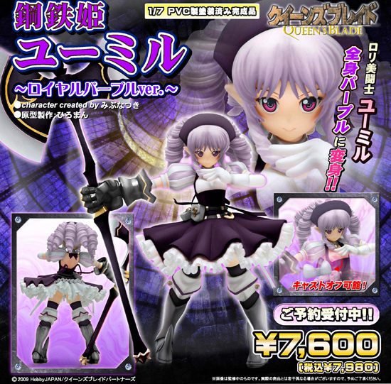 アニメ『クイーンズブレイド』よりロリ美闘士「鋼鉄姫ユーミル」がシックなロイヤルパープルver.で再登場!!繊細な巻き髪や可愛らしいドワーフドレスの柔らかさと、鋼鉄のアーマー&バトルアックスの重量感を忠実に再現した、ハイクオリティーPVCフィギュア!