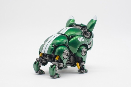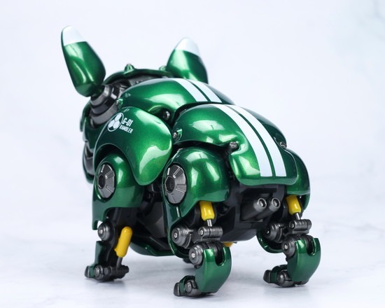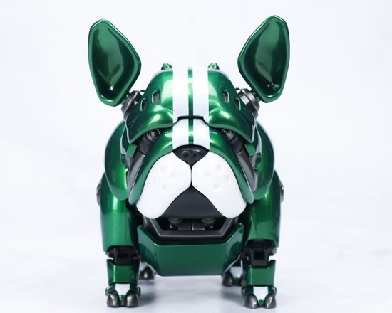 ブルドッグのブサカワイイ外観とサイバーパンク風のメカデザインを完璧に融合し、高い可動性能も兼ね備えた手のひらサイズのロボット犬を赤と緑の2色で展開します!