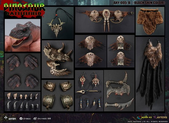 AXYTOYS ダイナソー・バトルフィールド AXY005B ティラノサウルス部族首長 ブラック 1/12スケール可動フィギュア