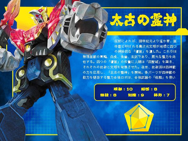 神秘的な霊力をテーマにした1/4小隊合体ロボ。