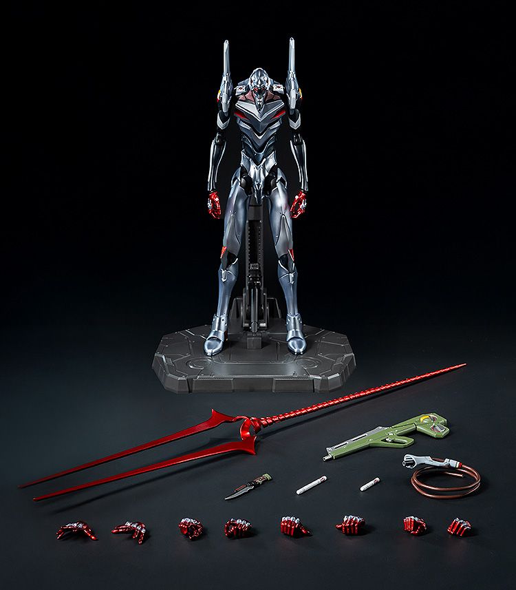 付属品:プログレッシブナイフ×1、パレットライフル×1、交換式のエントリープラグ×2 (短いエントリープラグ(挿入時再現用)×1、長いエントリープラグ(抜き出した状態再現用)×1)、ロンギヌスの槍×1、アンビリカルケーブル×1、交換式手首パーツ5対(リラックスしたポーズの手×1対、拳×1対、大きく開いたポーズの手×1対、武器保持用の手×1対、ライフル保持用の手×1対)、ロボ道アクションスタンド×1