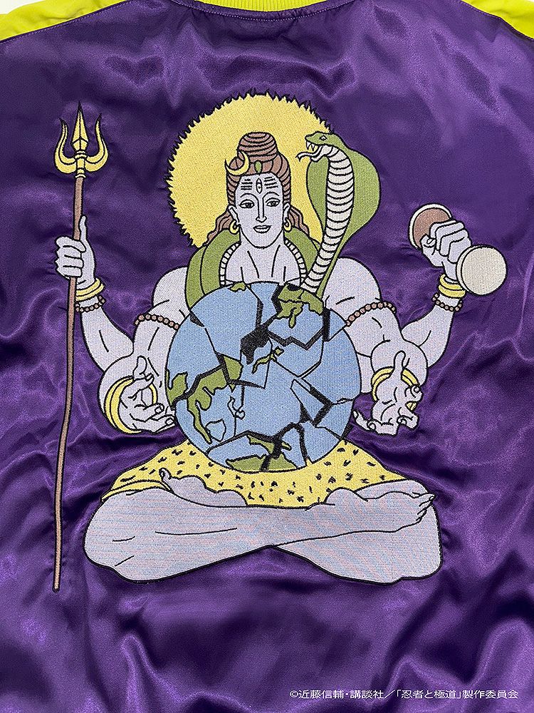 『忍者と極道』より忍者くんのボディースーツカラーのスカジャンに極道さんの「地球をブッ壊すシヴァ神」をフル刺繍した伝説(ウワサ) の灼熱(あつ)過ぎる関連商品(グッズ) が生誕(うま)れてしまいました!