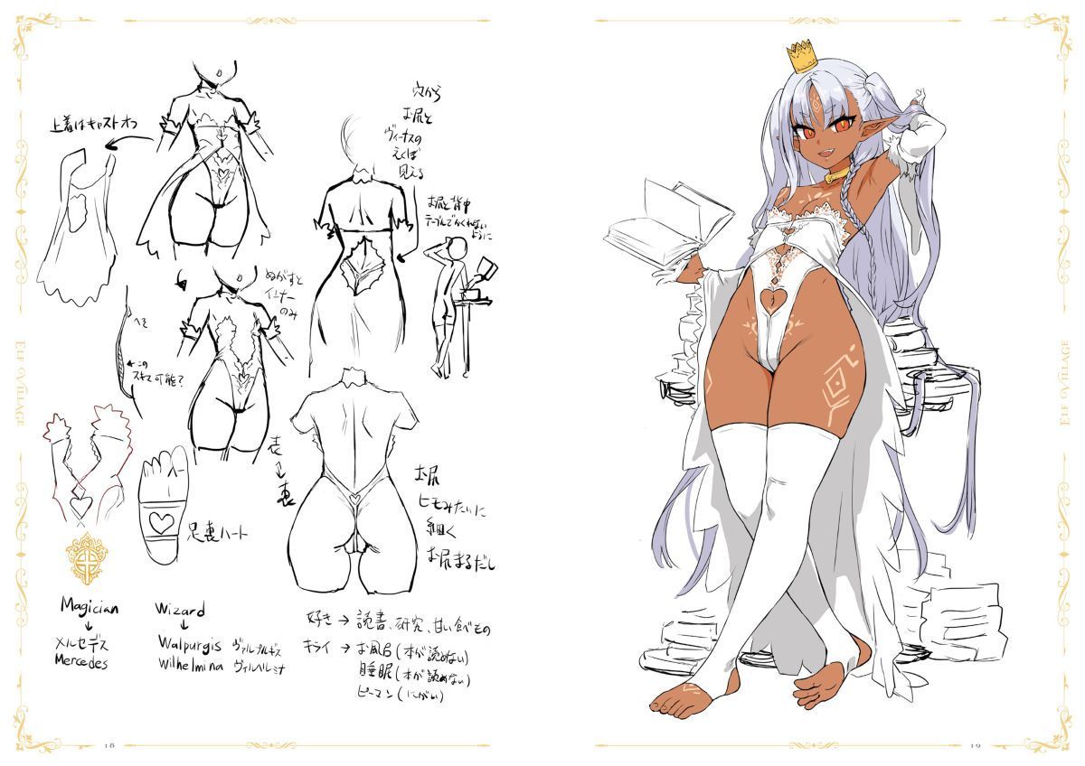 今回は「ダークエルフ村」と「沐浴着ver.」にスポットを当て、元イラストや各種設定画、デコマス写真に加え、フィギュア予約時に公開された応援イラストなどをまとめて掲載。