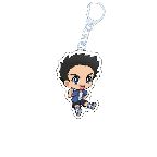 ぺたんと座ったデフォルメデザインのアクリルキーホルダーです。