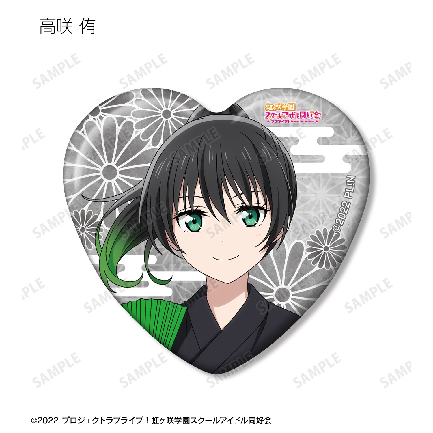 高咲 侑、上原歩夢、中須かすみ、桜坂しずく、朝香果林、宮下 愛、近江彼方、優木せつ菜、エマ・ヴェルデ、天王寺璃奈、三船栞子、ミア・テイラー、鐘 嵐珠の描き下ろしイラストをハート型の缶バッジに仕上げました。