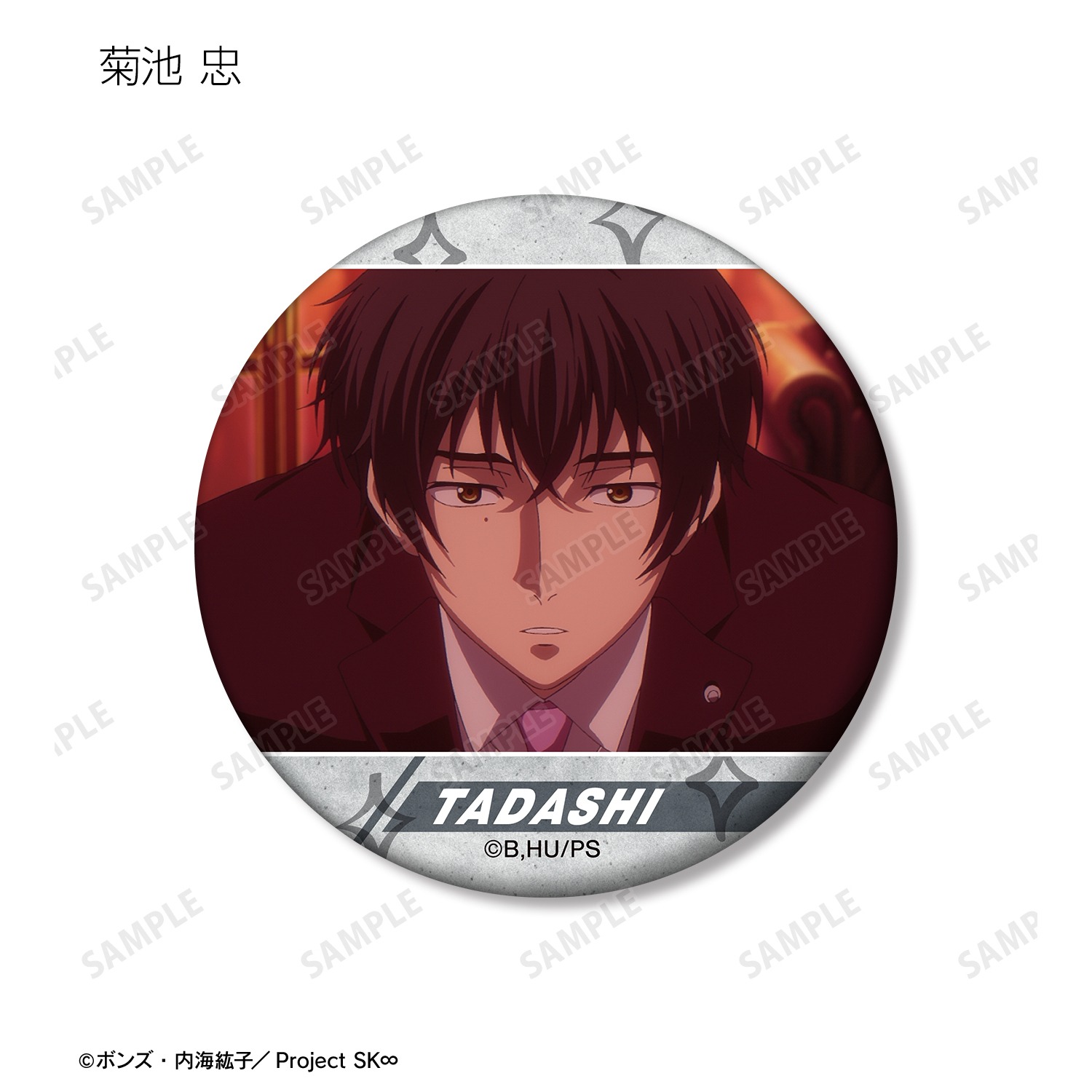 喜屋武 暦、馳河 ランガ、知念 実也、比嘉 広海、桜屋敷 薫、南城 虎次郎、神道 愛之介、菊池 忠の印象的なシーンをマットな手触りの缶バッジに仕上げました。