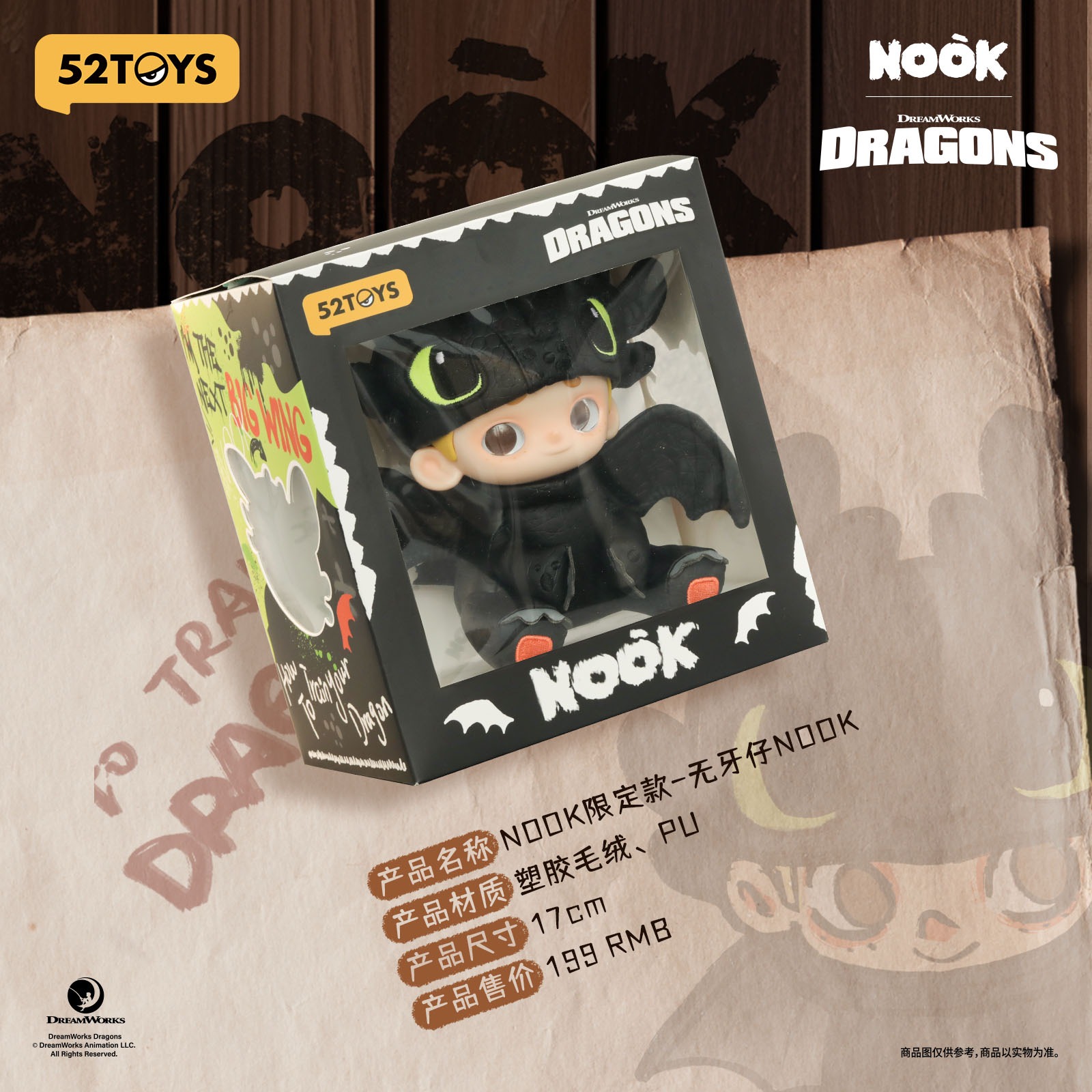 52TOYS NOOK&ヒックとドラゴン トゥースレス ぬいぐるみキーチェーン 限定版(リミテッドエディション)
