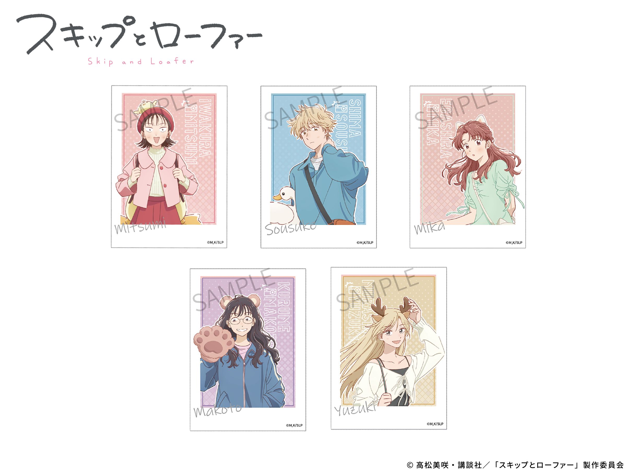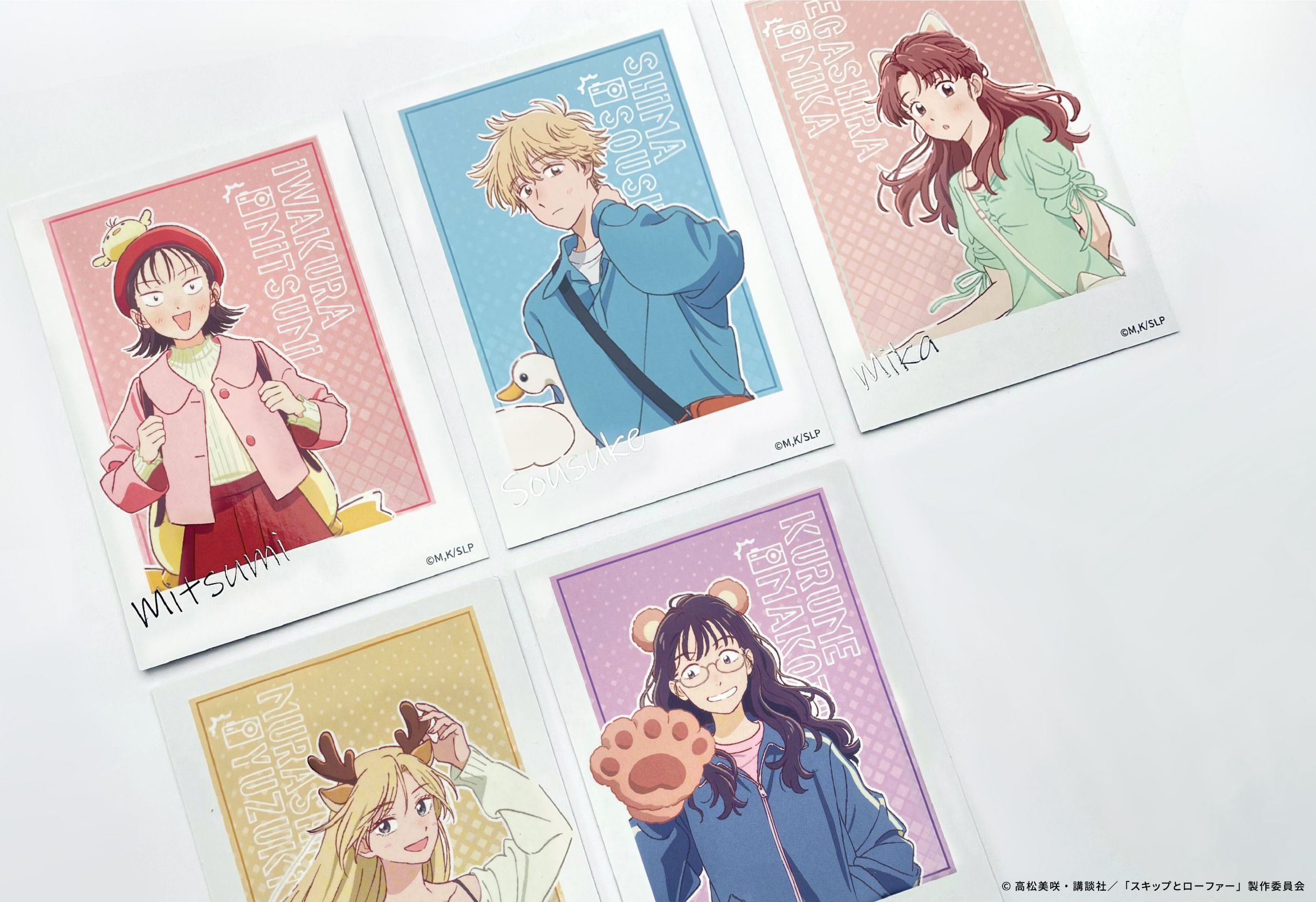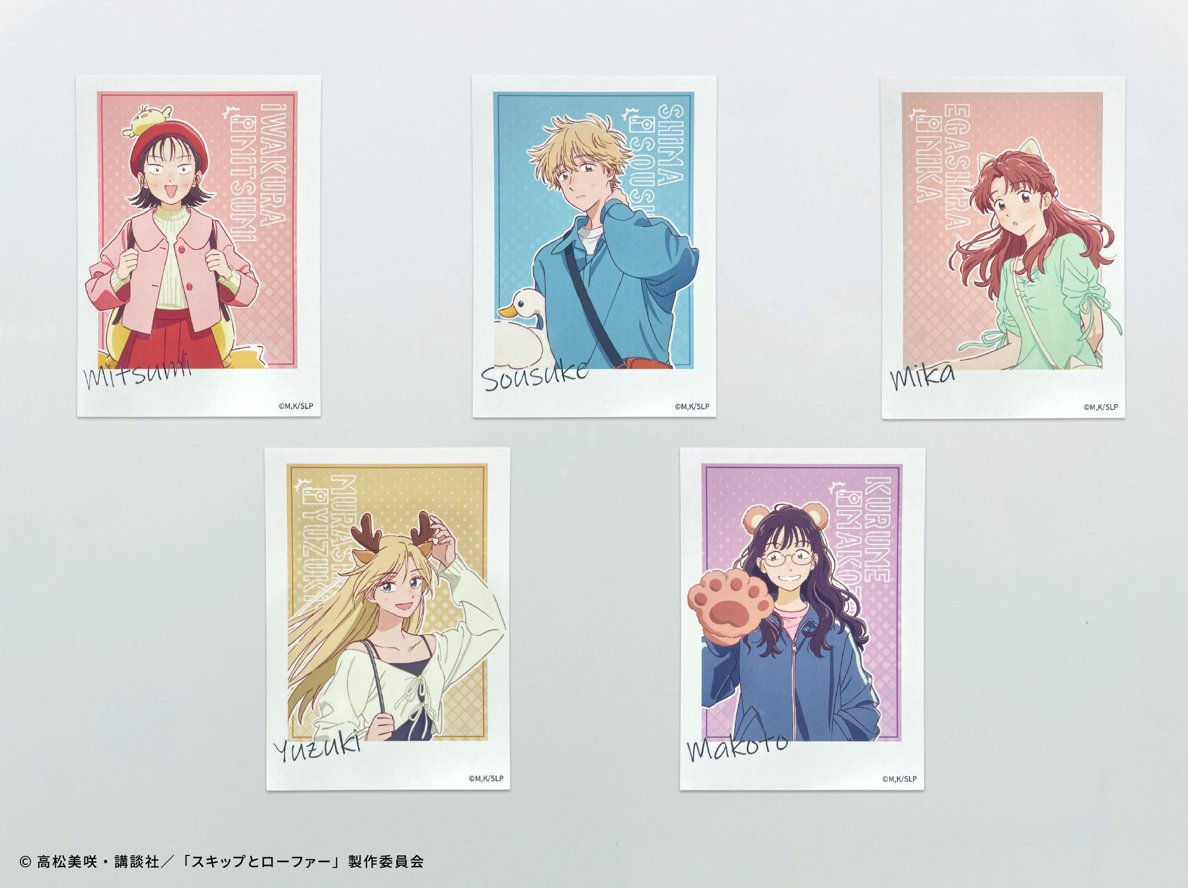 TVアニメ『スキップとローファー』より、「遊園地」テーマの描き下ろしイラストを使用した各キャラクターのインスタントカメラ風ブロマイドをお届けします!