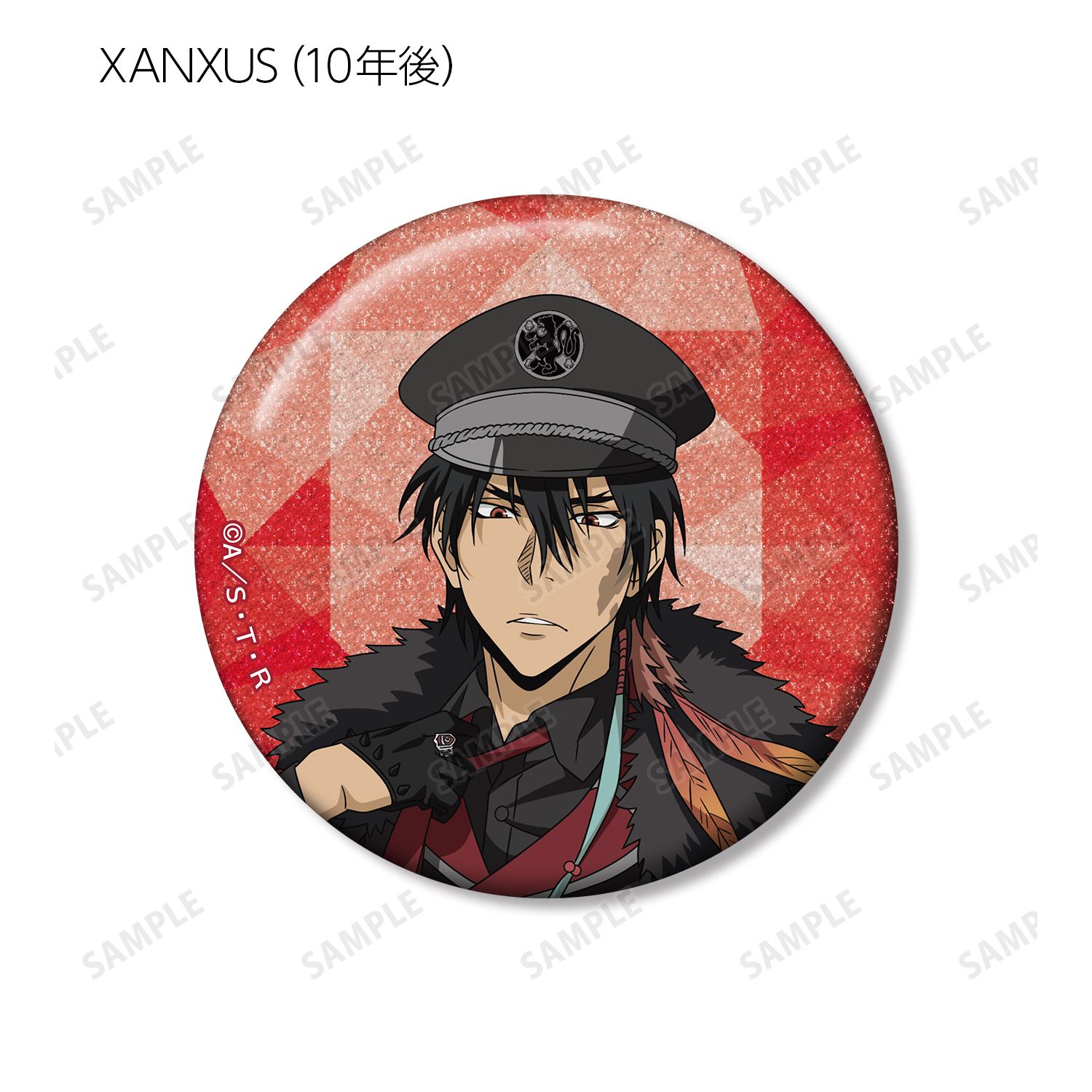 沢田 綱吉 、リボーン、獄寺 隼人、山本 武、雲雀 恭弥、六道 骸(10年後)、XANXUS (10年後)、スペルビ・スクアーロ(10年後)、ベルフェゴール(10年後)、フランの描き下ろしイラストをグリッター加工を施した缶バッジに仕上げました。