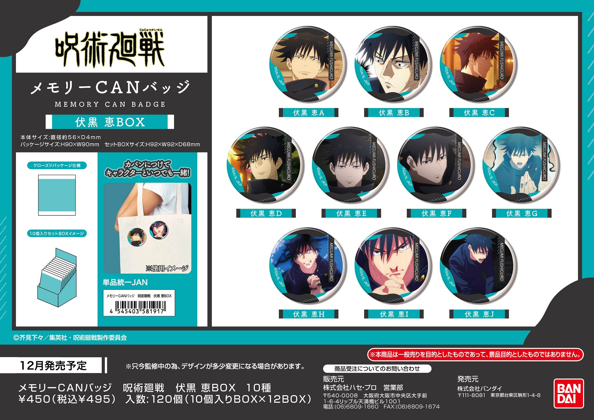 【予約特別価格】 呪術廻戦 メモリーCANバッジ 伏黒恵BOX 10個入り1BOX