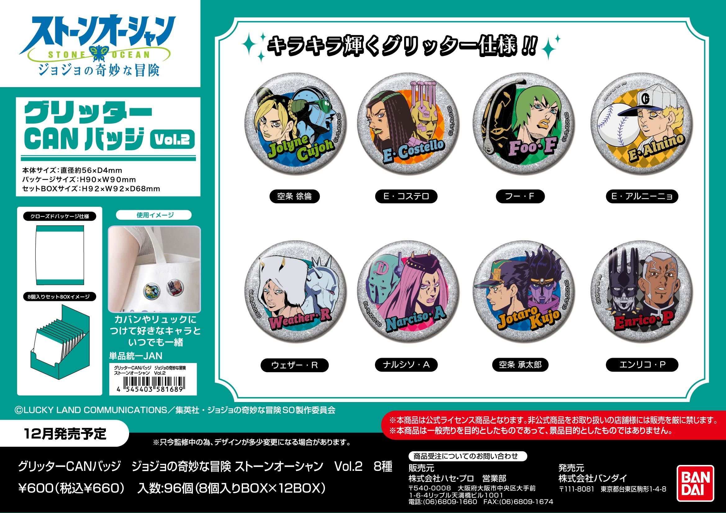 ジョジョの奇妙な冒険 ストーンオーシャン グリッターCANバッジ Vol.2 8個入り1BOX