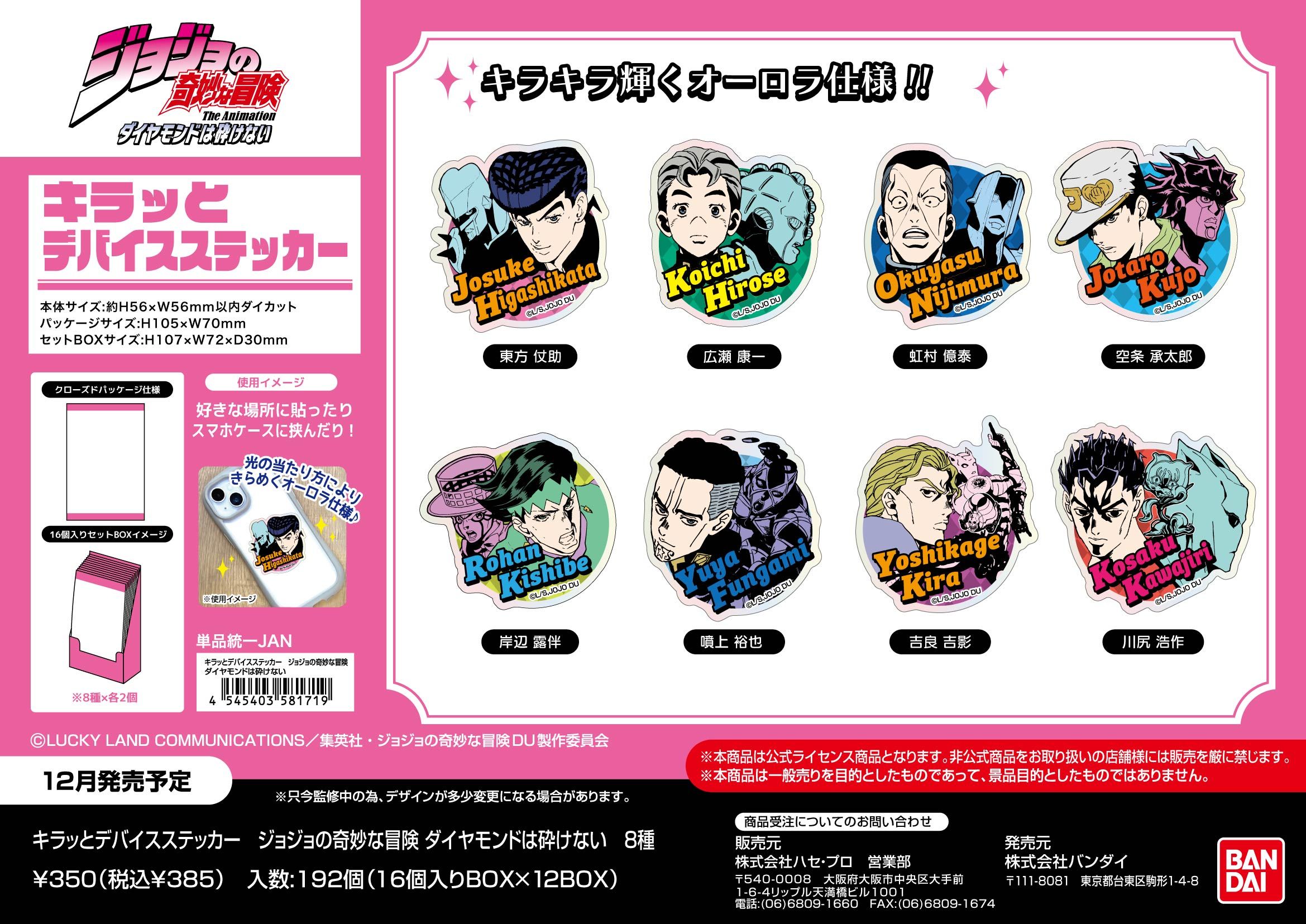 ジョジョの奇妙な冒険 ダイヤモンドは砕けない キラッとデバイスステッカー 16個入り1BOX