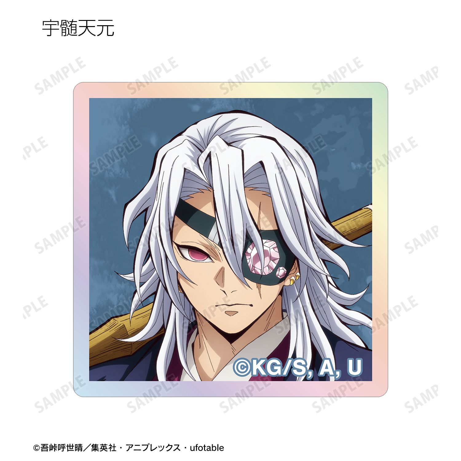 竈門禰豆子、我妻善逸、嘴平伊之助、冨岡義勇、胡蝶しのぶ、宇髄天元、甘露寺蜜璃、時透無一郎、伊黒小芭内、珠世、愈史郎、童磨、獪岳のイラストをオーロラアクリルタイルに仕上げました。