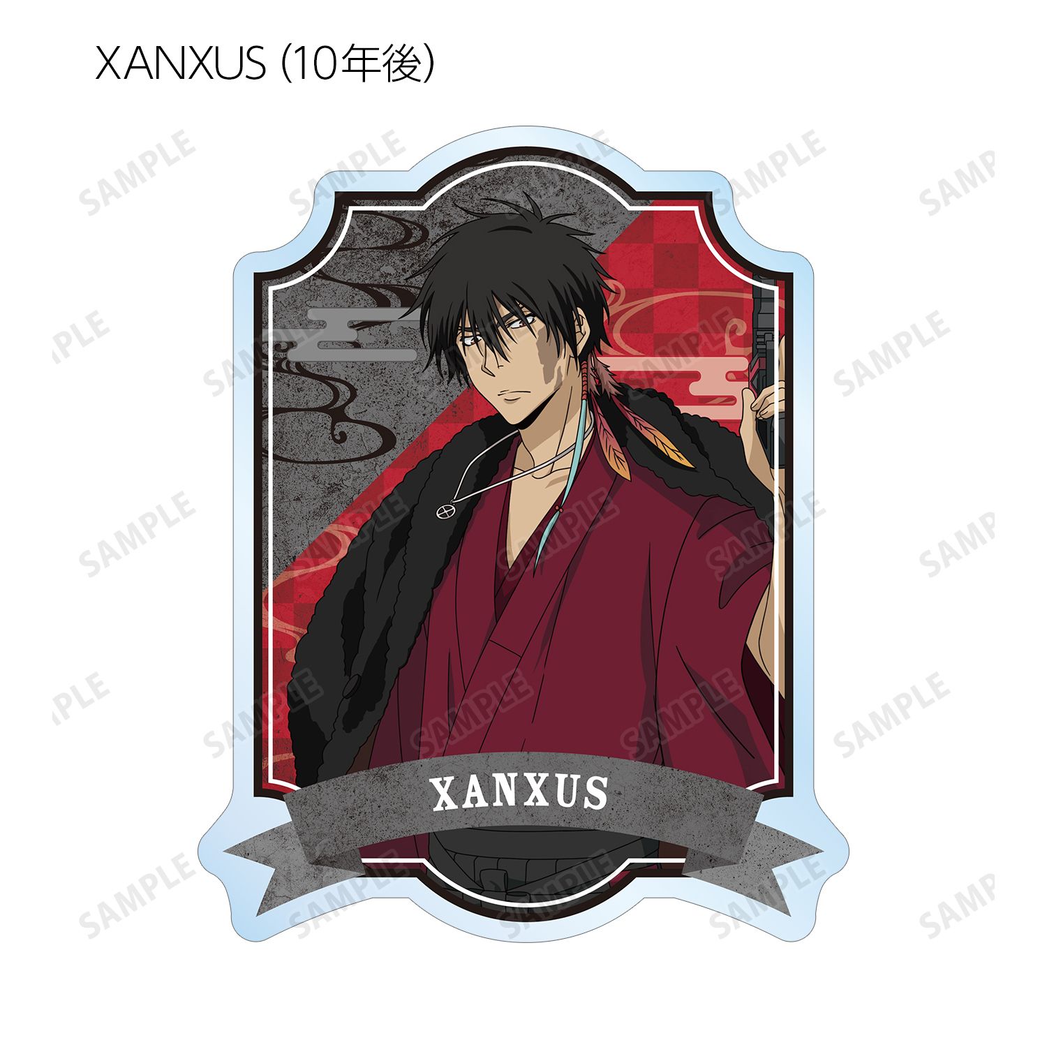 沢田 綱吉、リボーン、獄寺 隼人、山本 武、雲雀 恭弥、六道 骸(10年後)、XANXUS(10年後)、スペルビ・スクアーロ(10年後)、ベルフェゴール(10年後) 、フランの描き下ろしイラストをアクリルバッジに仕上げました。