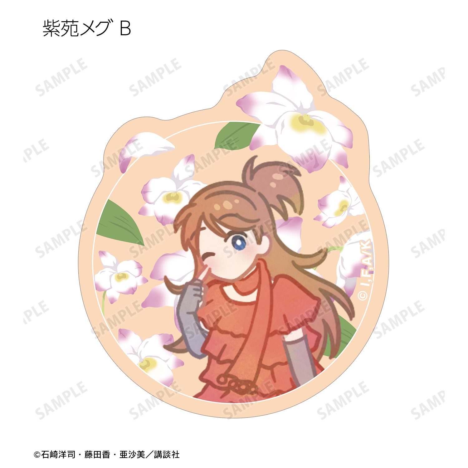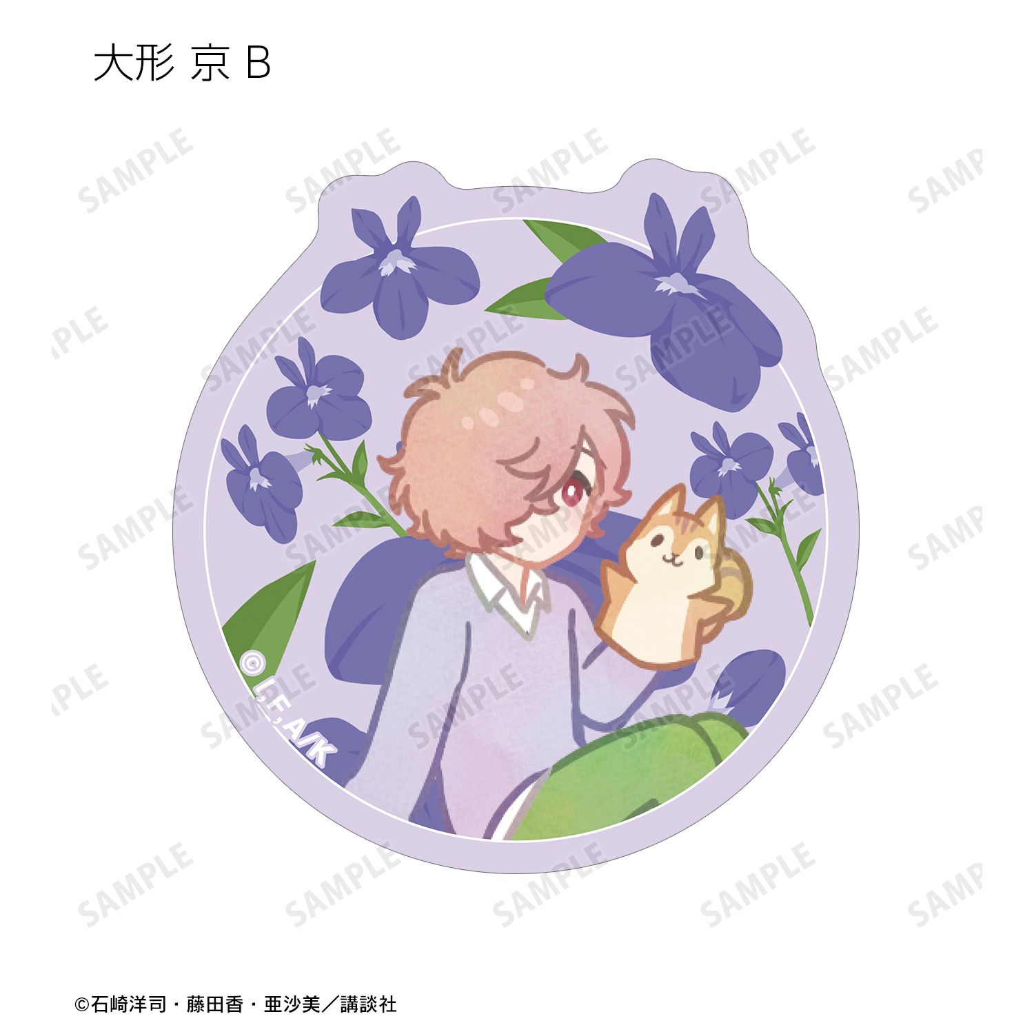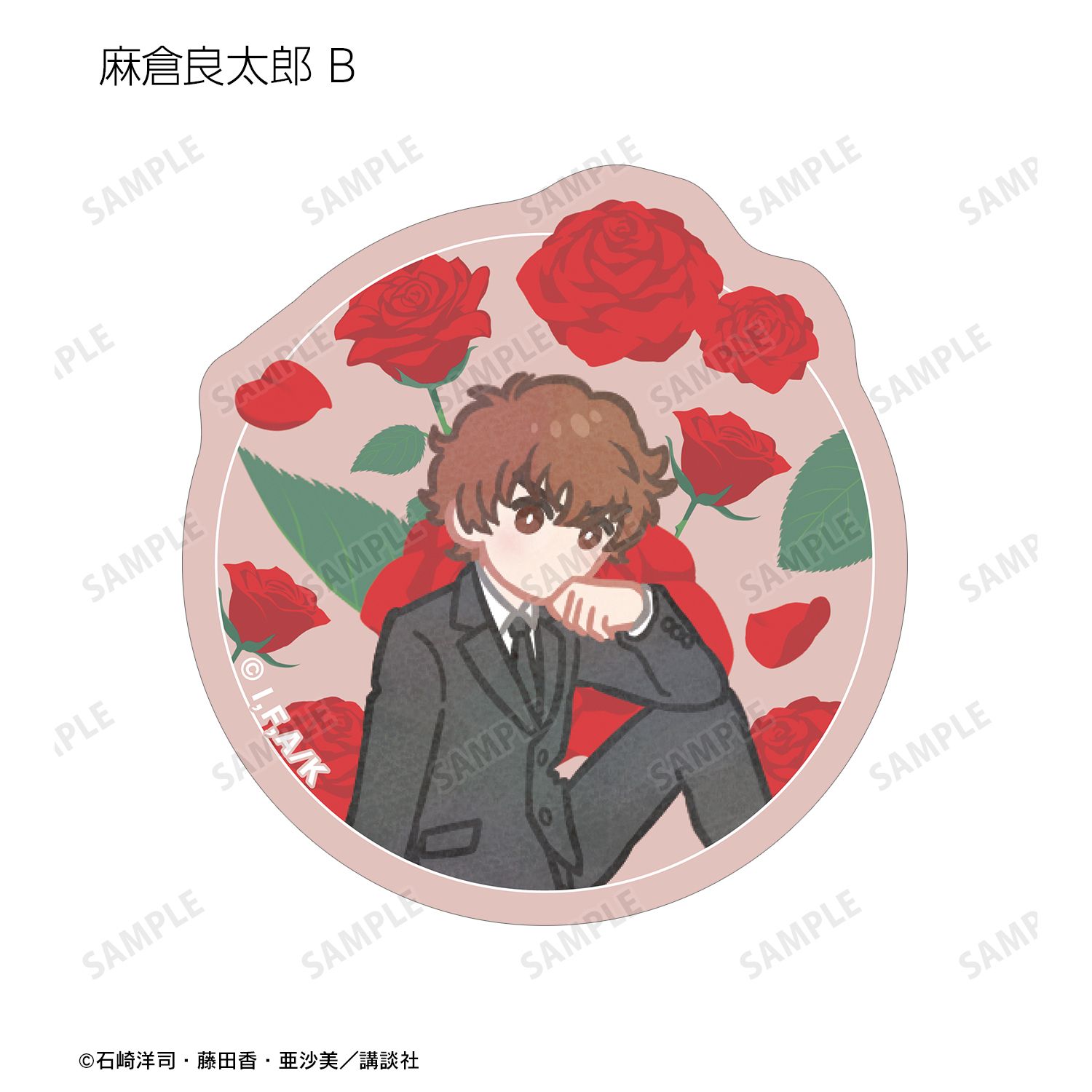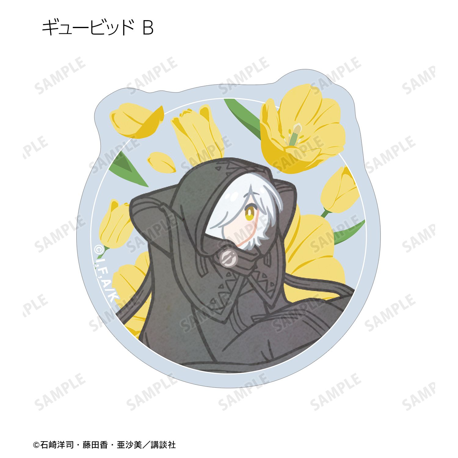 黒鳥千代子、ギュービッド、桃花・ブロッサム、大形 京、紫苑メグ、麻倉良太郎、東海寺阿修羅のイラストをボタニカルデザインに落とし込んで繊細なタッチで新たに描き起こし、ダイカットのステッカーに仕上げました。