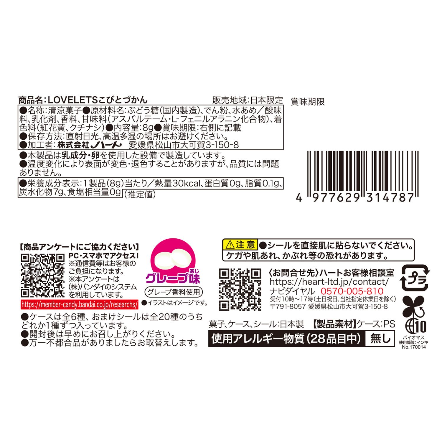 シールを貼った容器に、グレープ味のタブレット菓子を充填した商品です。