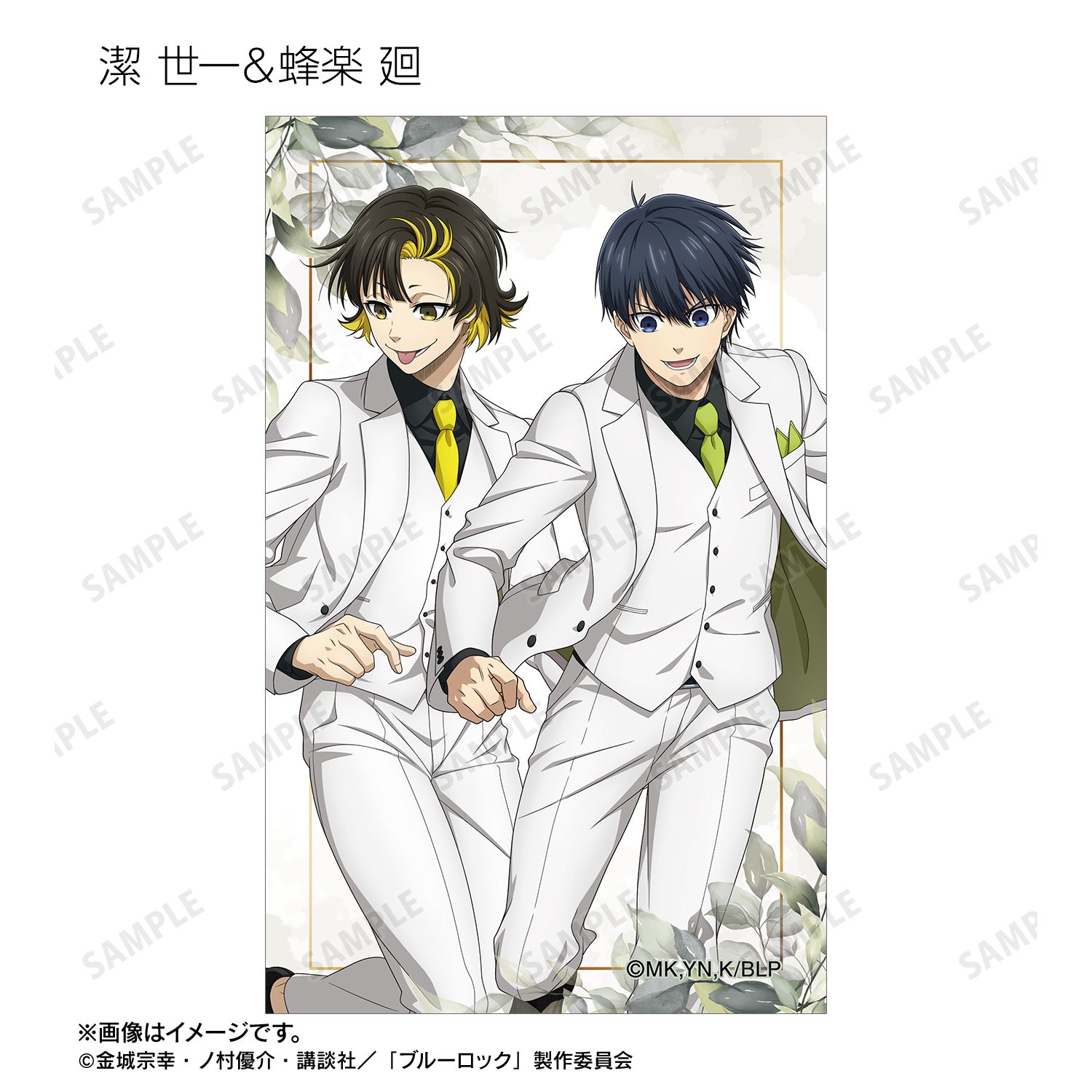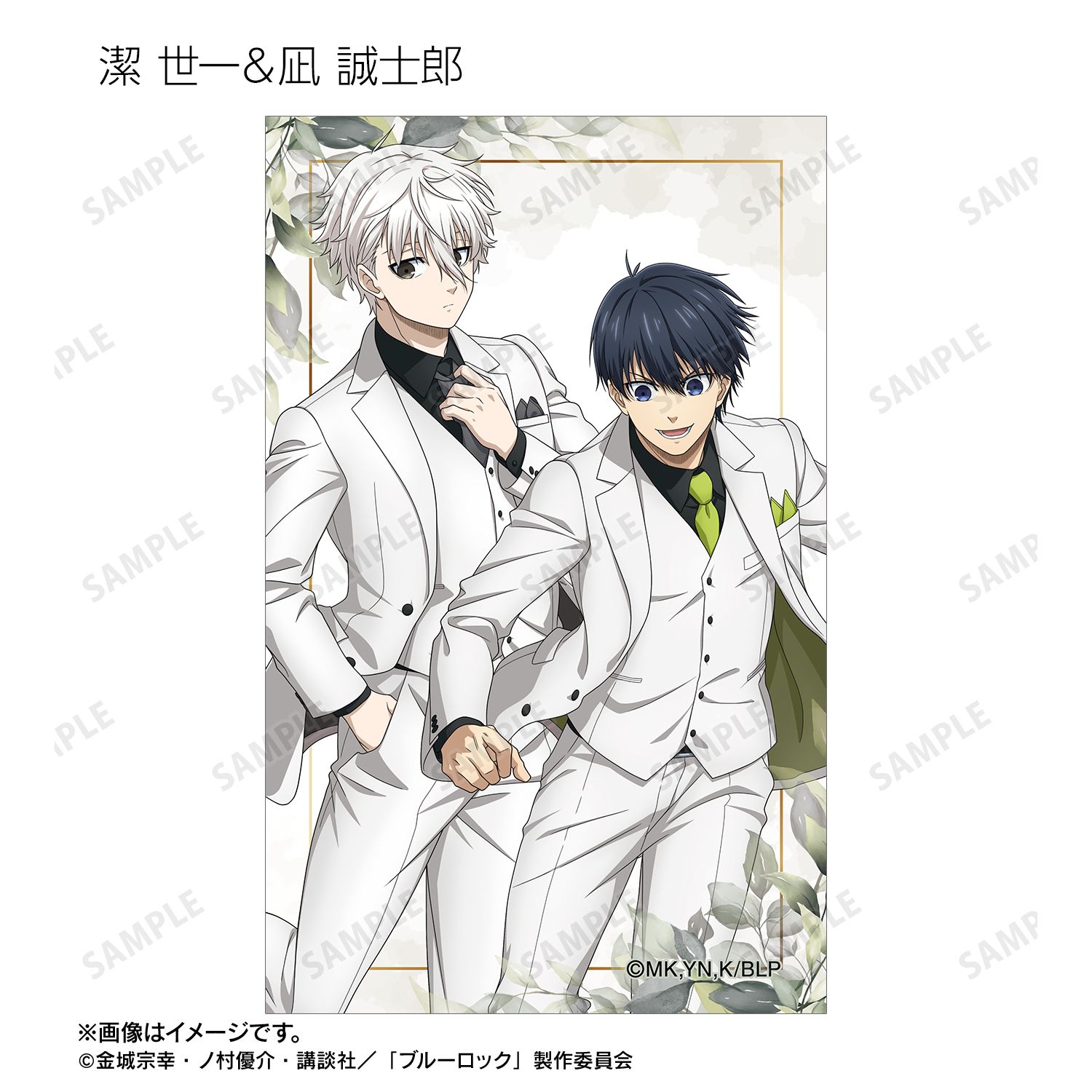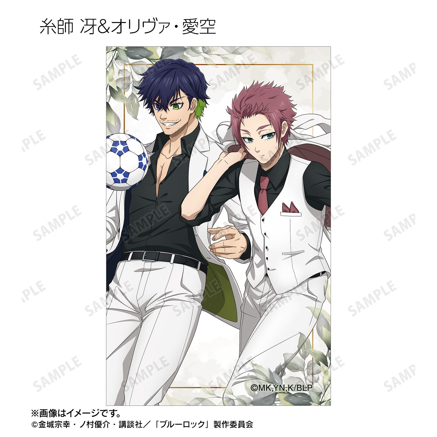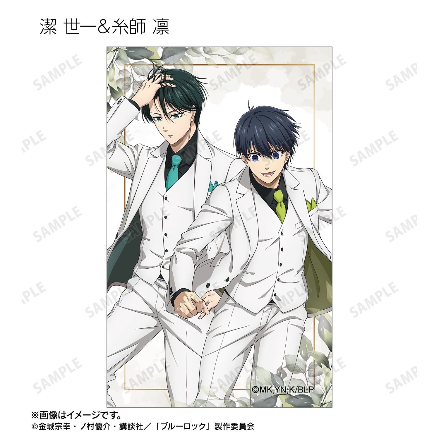 潔 世一、糸師 凛、凪 誠士郎、烏 旅人、蜂楽 廻、千切 豹馬、御影 玲王、糸師 冴、オリヴァ・愛空の描き下ろしイラストをイラストカードに仕上げました。