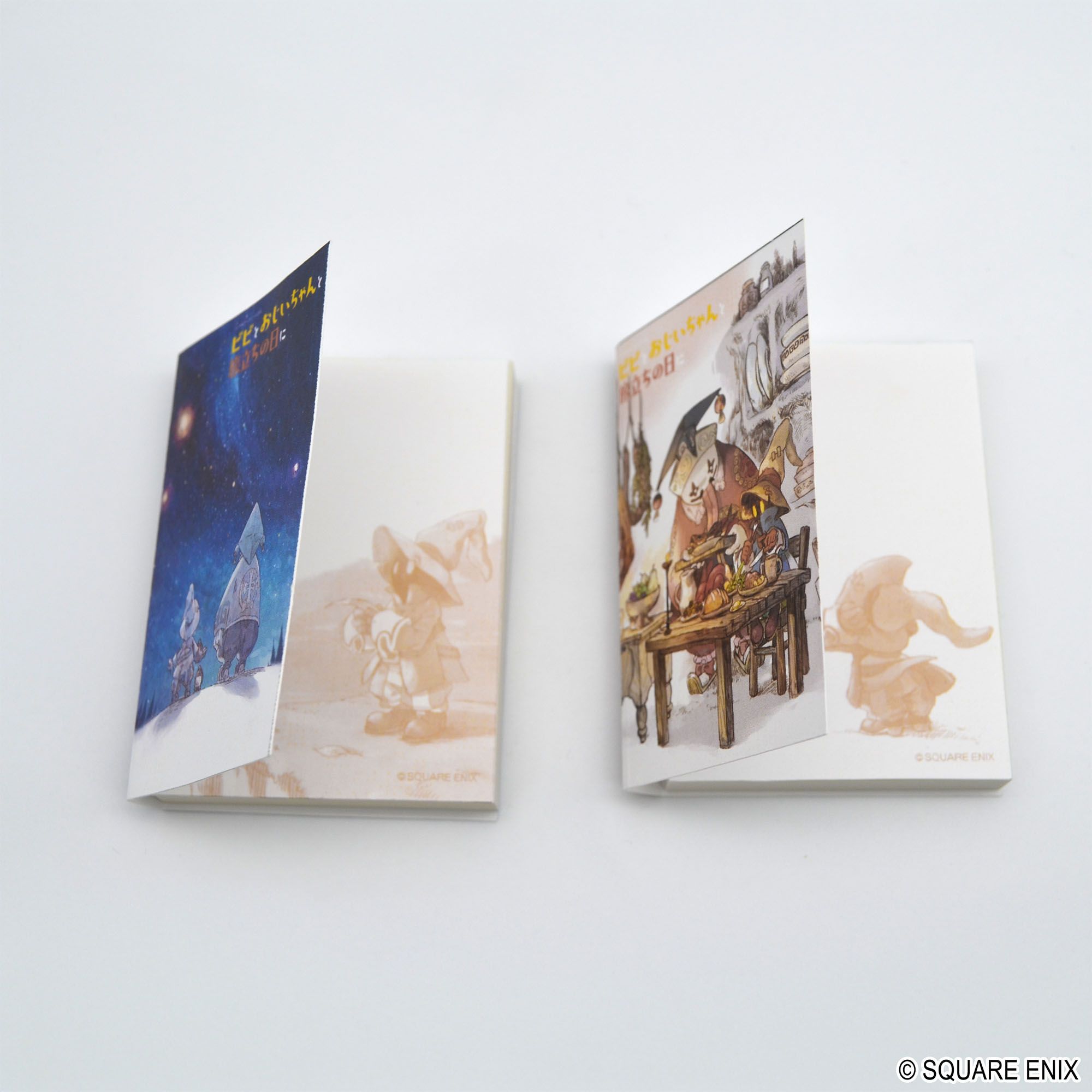 えほん「ファイナルファンタジーIXえほん ビビとおじいちゃんと旅立ちの日に」より、かわいらしいビビとおじいちゃんのイラストがあしらわれた付箋2冊セットです。