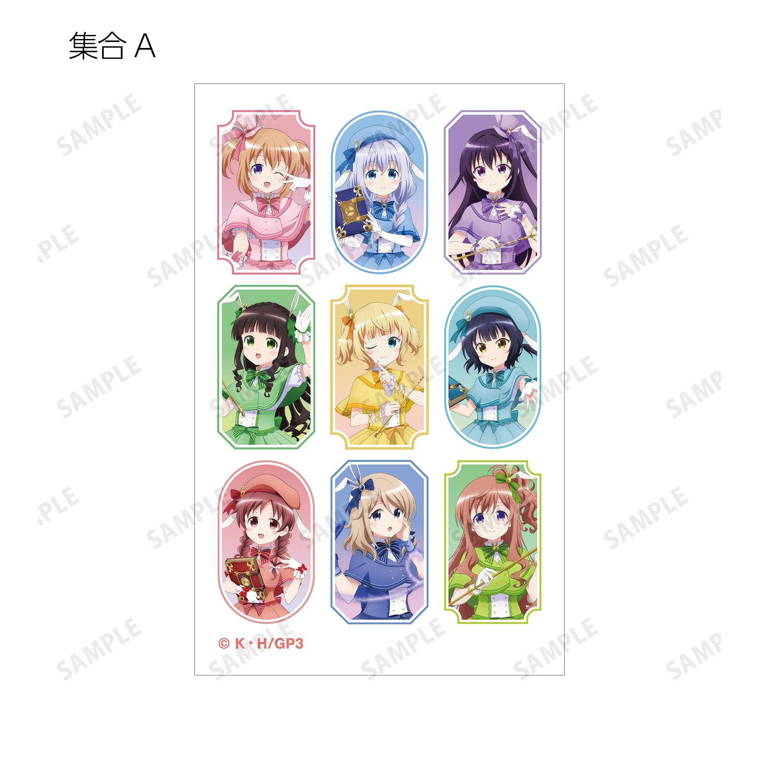 ココア、チノ、リゼ、千夜、シャロ、マヤ、メグ、青山ブルーマウンテン、モカの描き下ろしイラストをイラストカードに仕上げました。