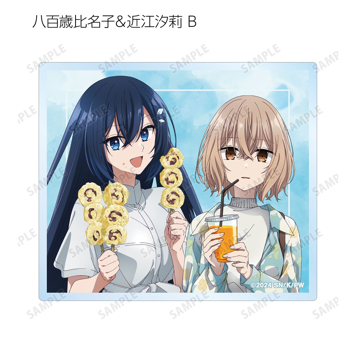 八百歳比名子、近江汐莉、社 美胡のイラストをアクリルカードに仕上げました。