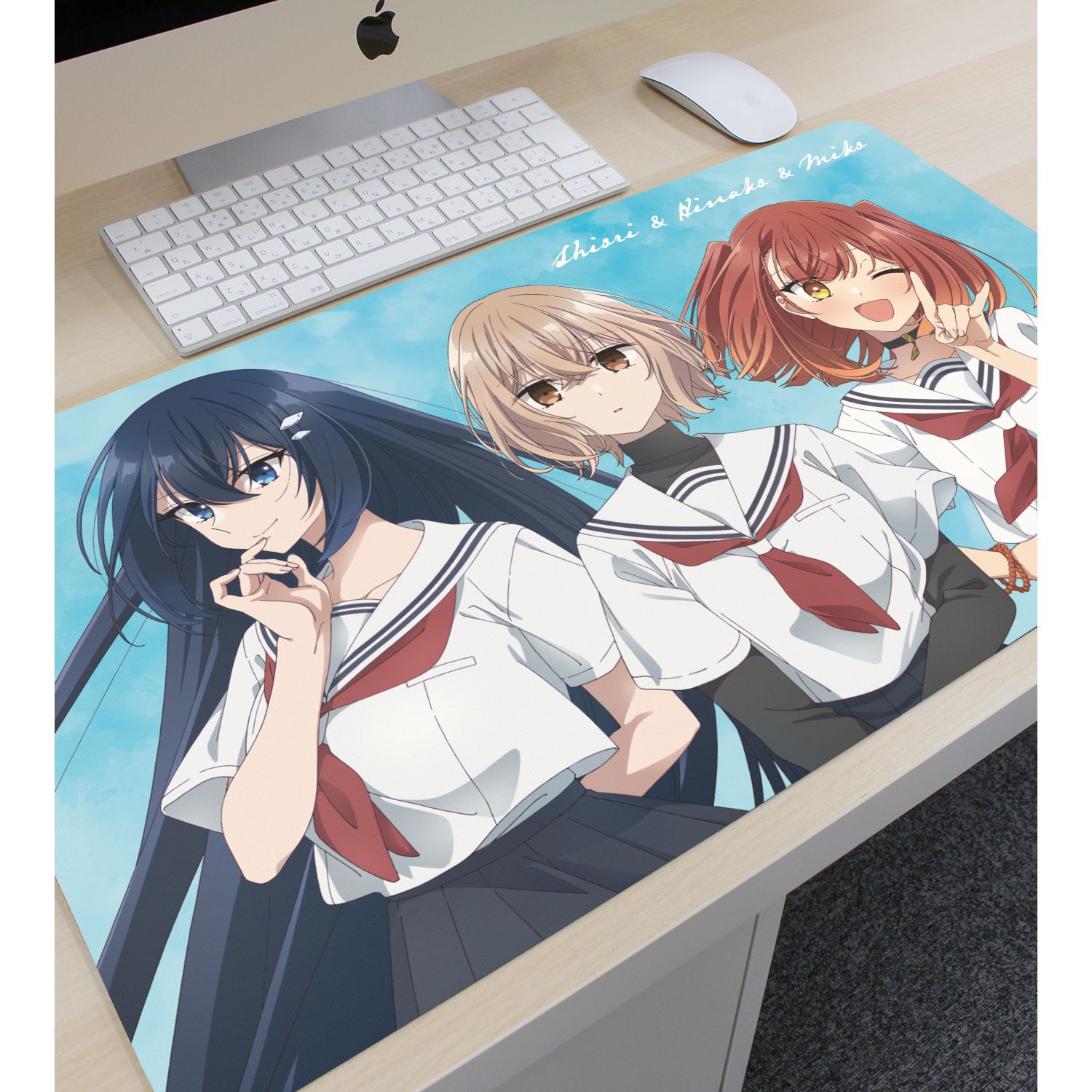 八百歳比名子、近江汐莉、社 美胡のイラストをマルチデスクマットに仕上げました。