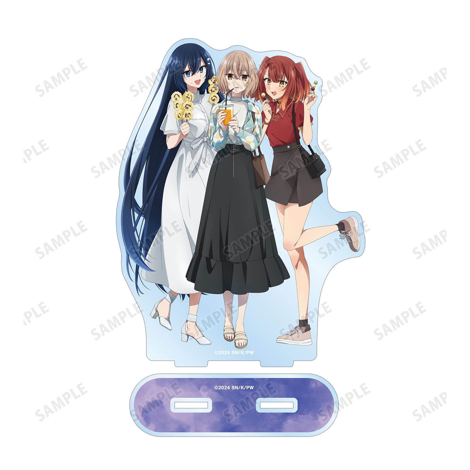 八百歳比名子、近江汐莉、社 美胡のイラストをBIGなアクリルスタンドに仕上げました。