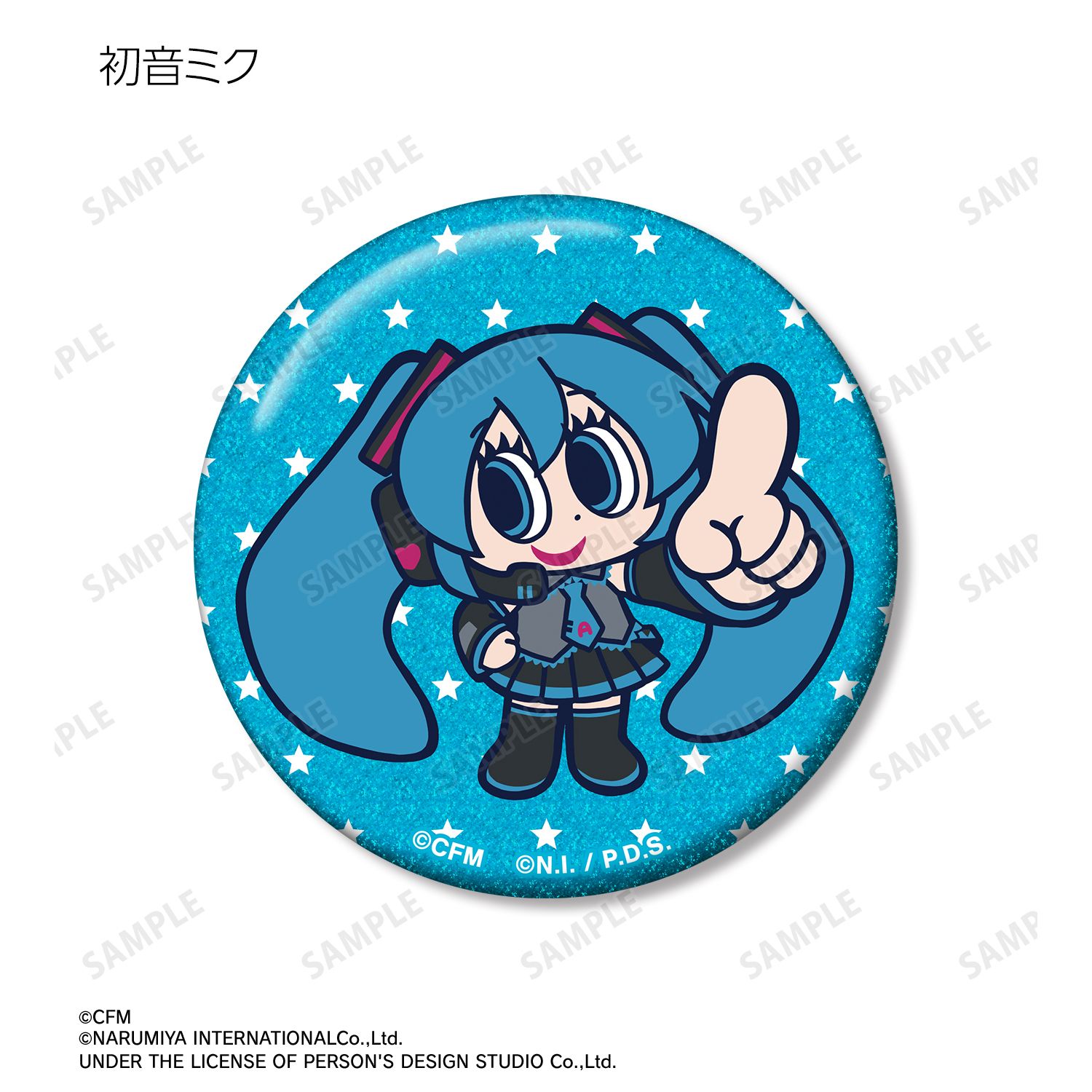 『初音ミク』×「ANGEL BLUE」のコラボレーションアイテム「ANGEL BLUEコラボ 描き起こし トレーディンググリッター缶バッジ」の登場です。