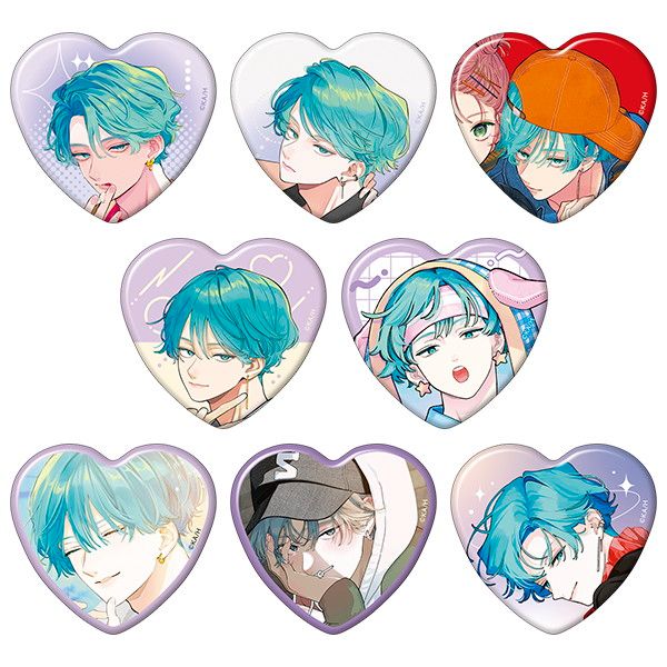 キャラクターの印象的な表情を集めたハート形の推しキャラバッジコレクションです。