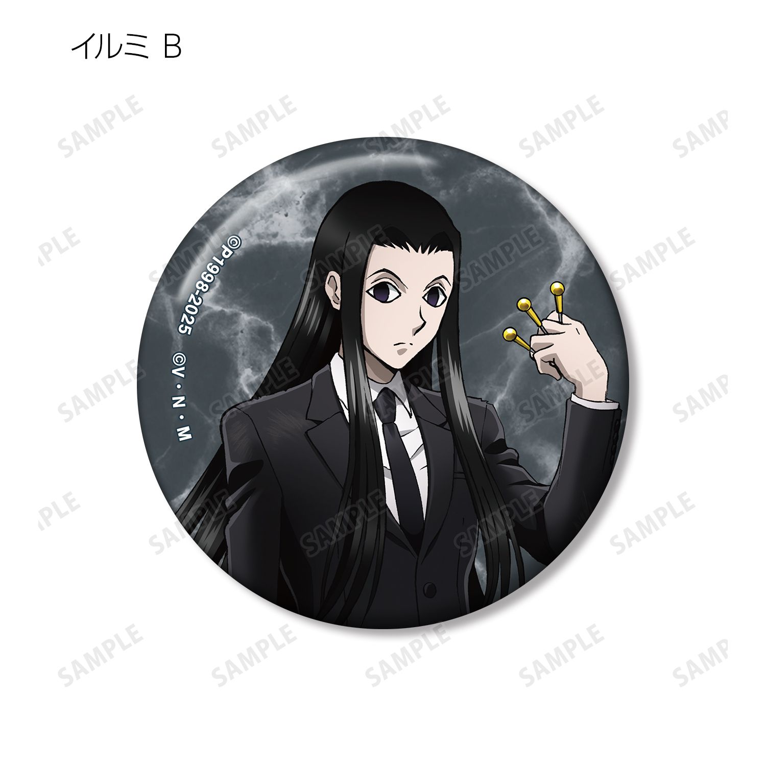 ゴン、キルア、レオリオ、クラピカ、クロロ、シャルナーク、フェイタン、ヒソカ、イルミの描き下ろしイラストを缶バッジに仕上げました。