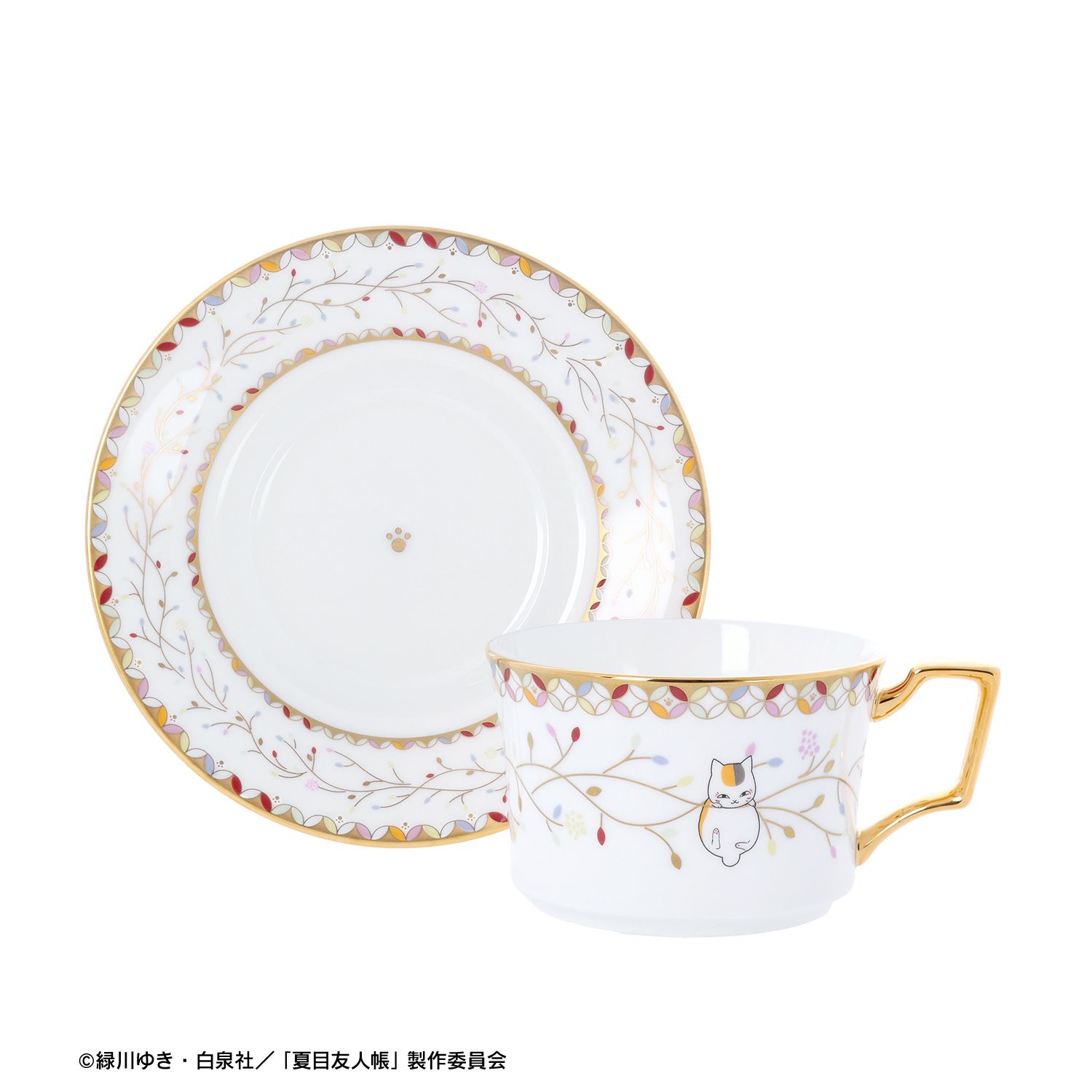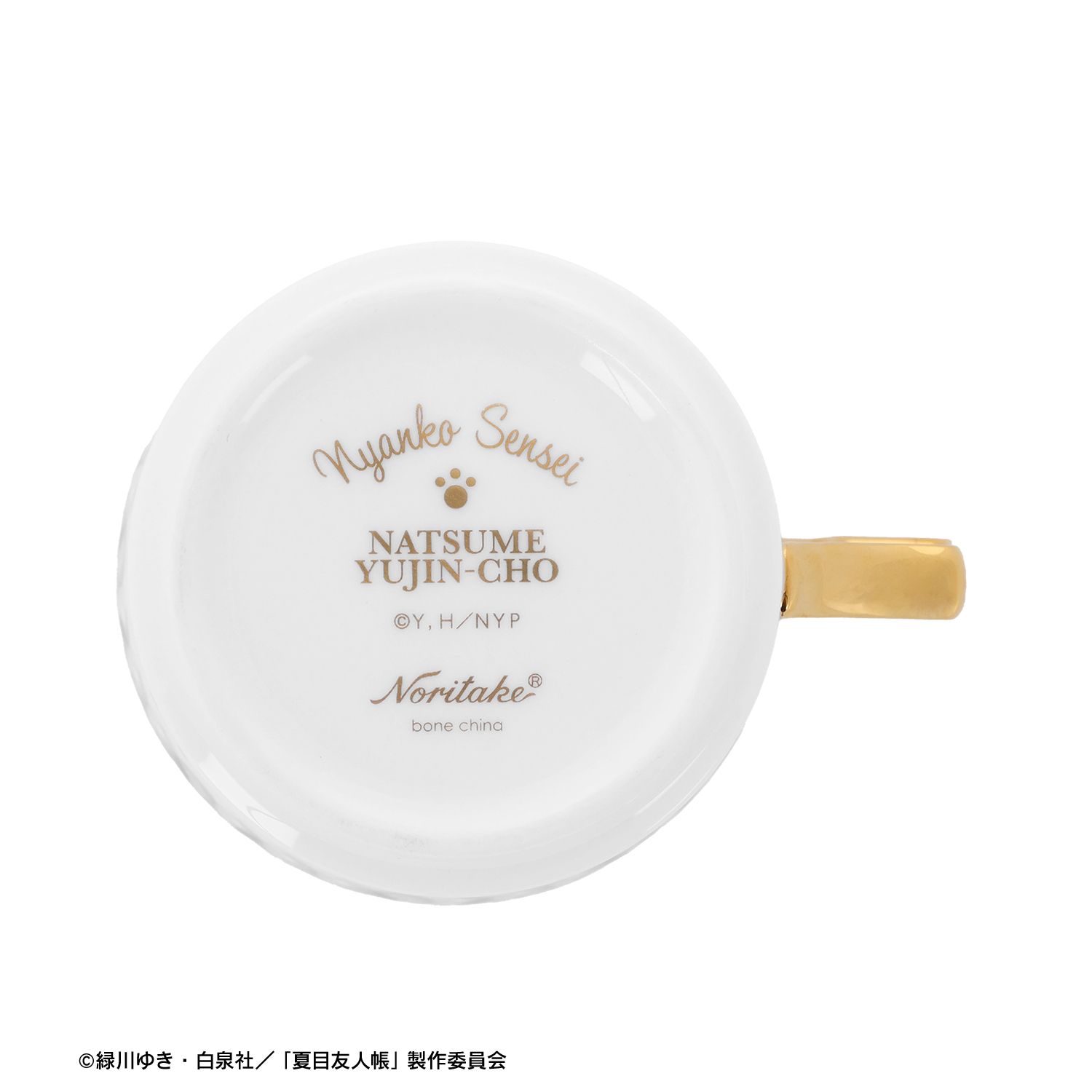 カップ裏、ソーサー裏にはノリタケロゴと、NATSUME YUJIN-CHO、Nyanko Senseiの文字と、ニャンコ先生の肉球を印字しております。