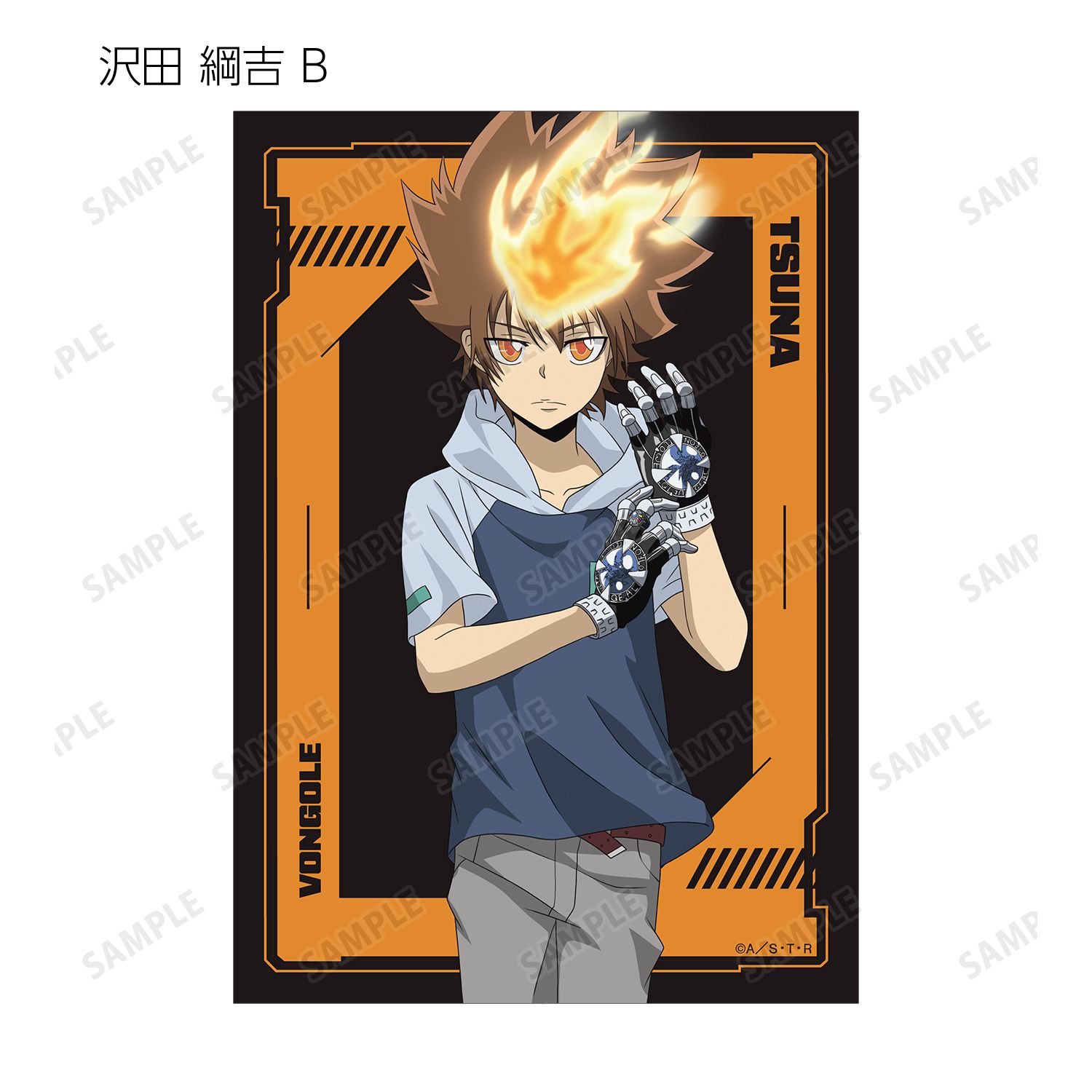 沢田 綱吉、リボーン、獄寺 隼人(10年後)、山本 武(10年後)、雲雀 恭弥(10年後)、六道 骸(10年後)、ディーノ(10年後)、XANXUS(10年後)、スペルビ・スクアーロ(10年後)、ベルフェゴール(10年後)、フラン、白蘭の描き下ろしイラストをブロマイドに仕上げました。
