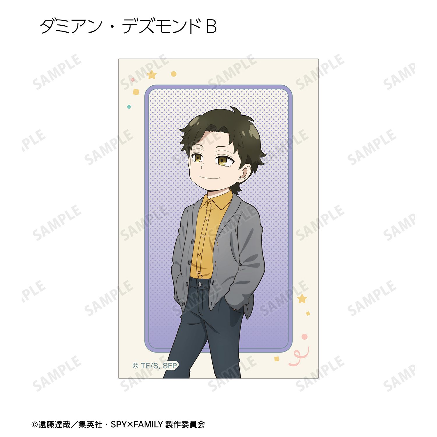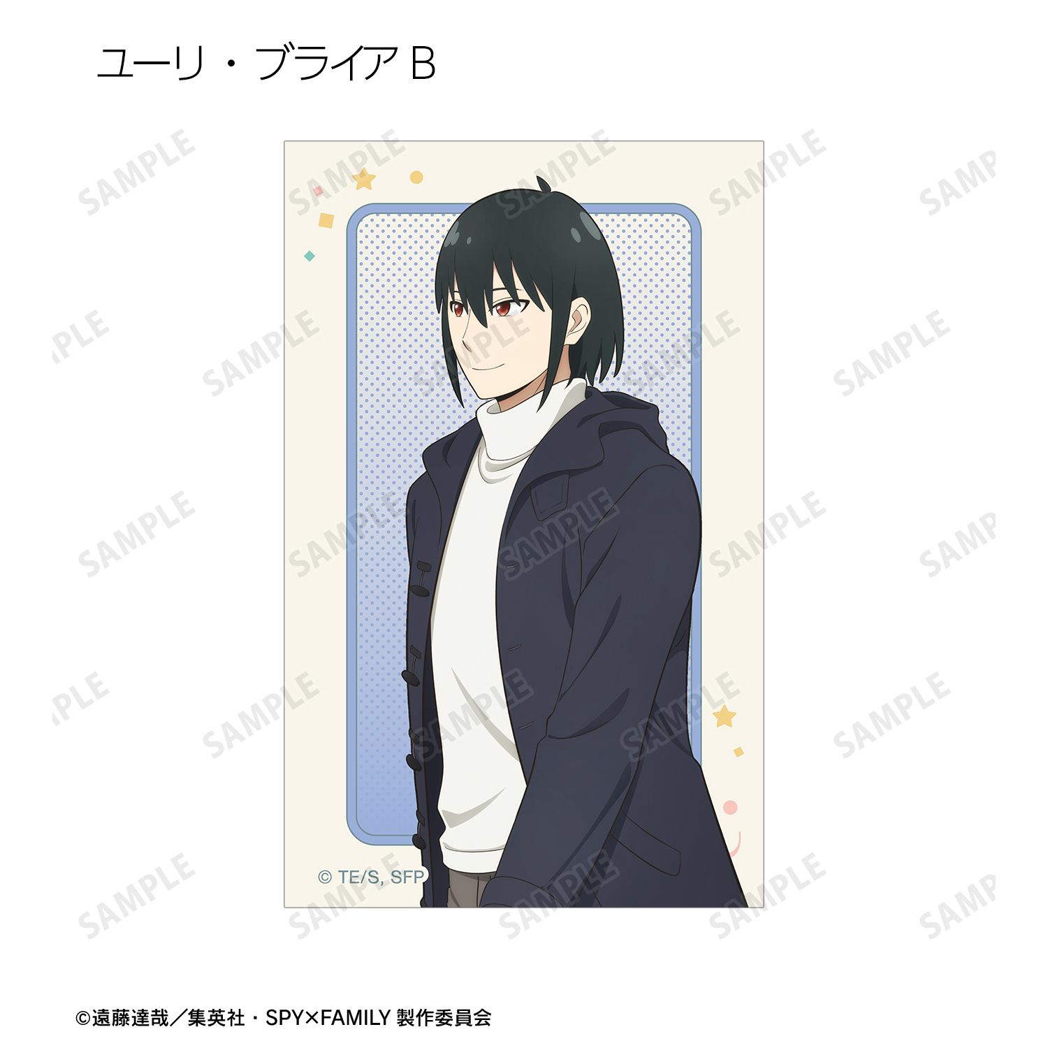 ロイド・フォージャー、アーニャ・フォージャー、ヨル・フォージャー、ボンド・フォージャー、ユーリ・ブライア、ダミアン・デズモンド、ベッキー・ブラックベルの描き下ろしイラストをイラストカードに仕上げました。