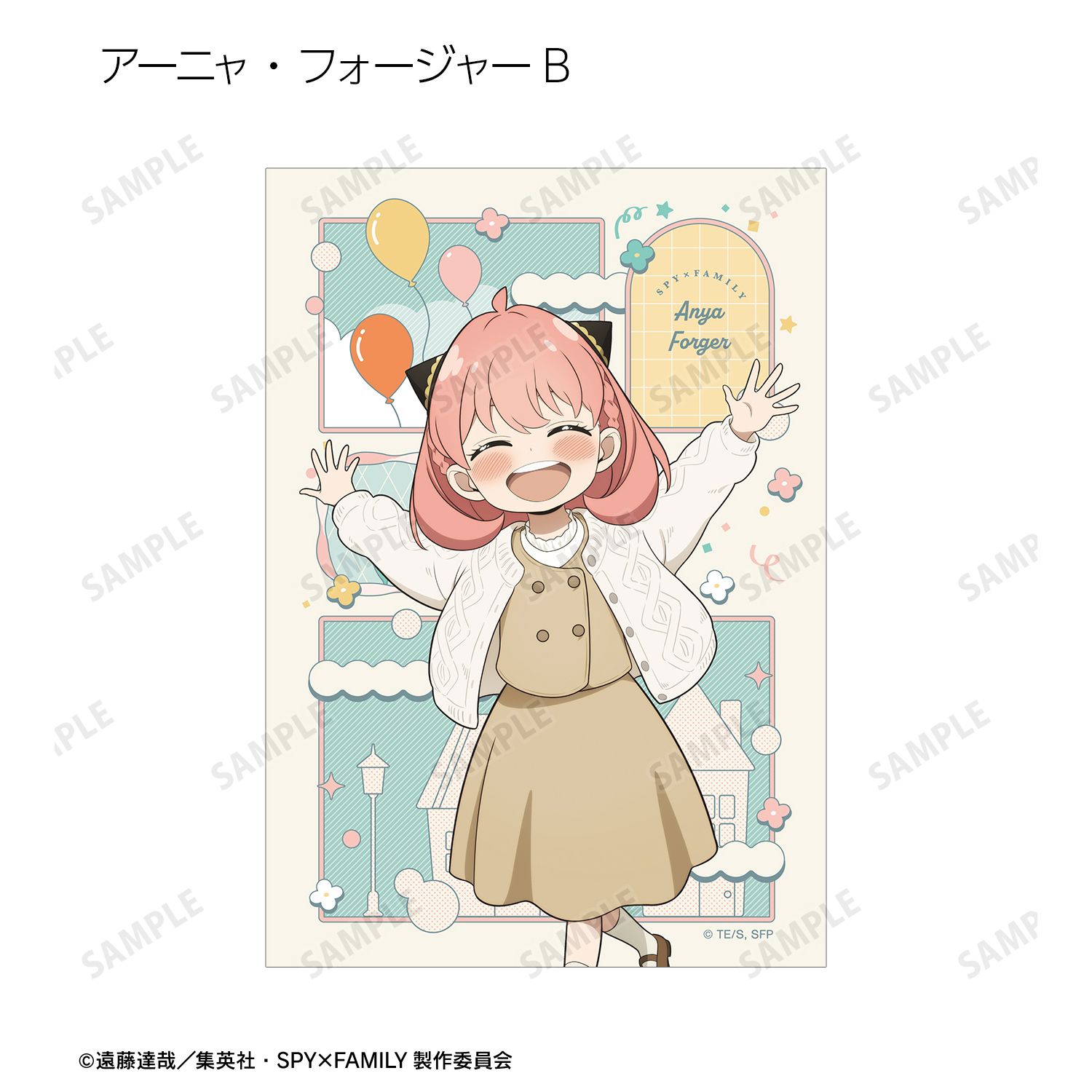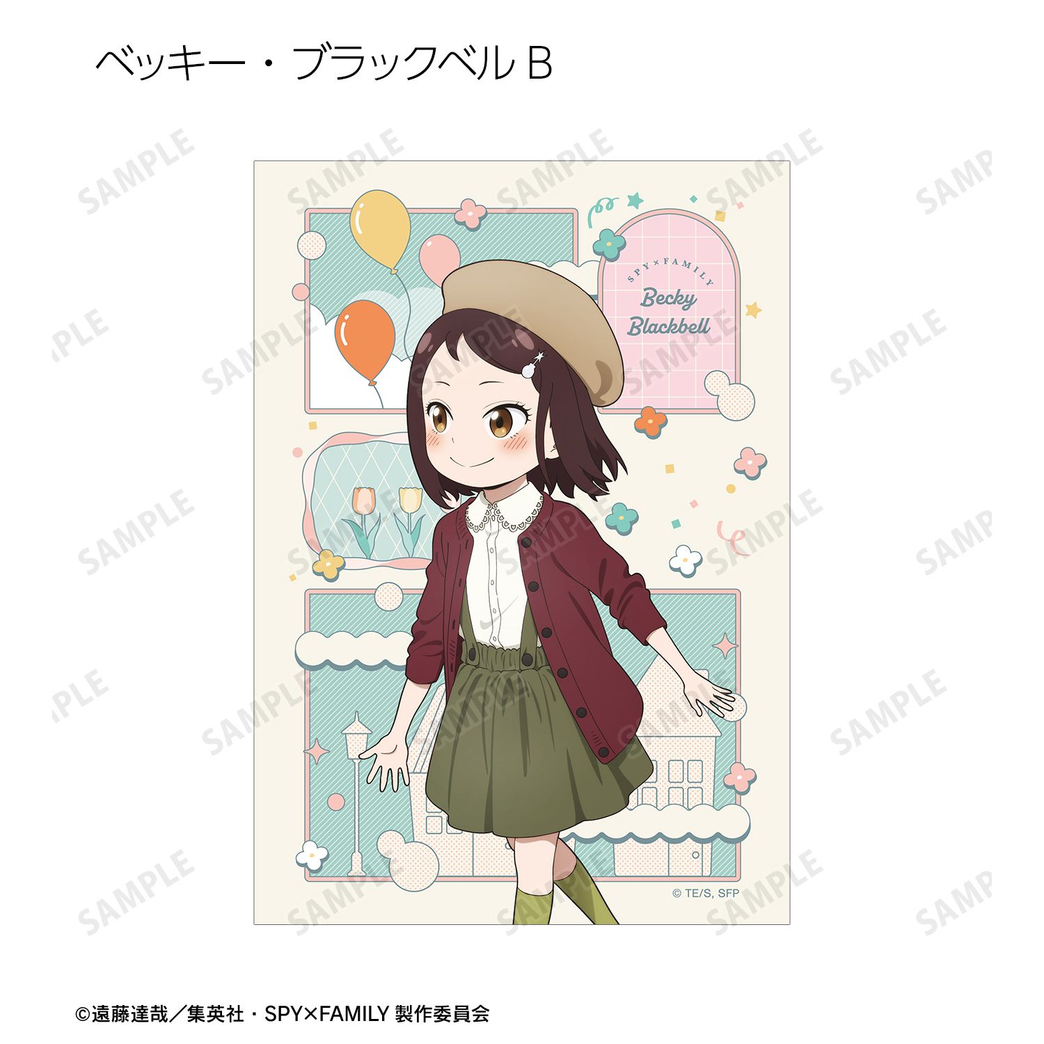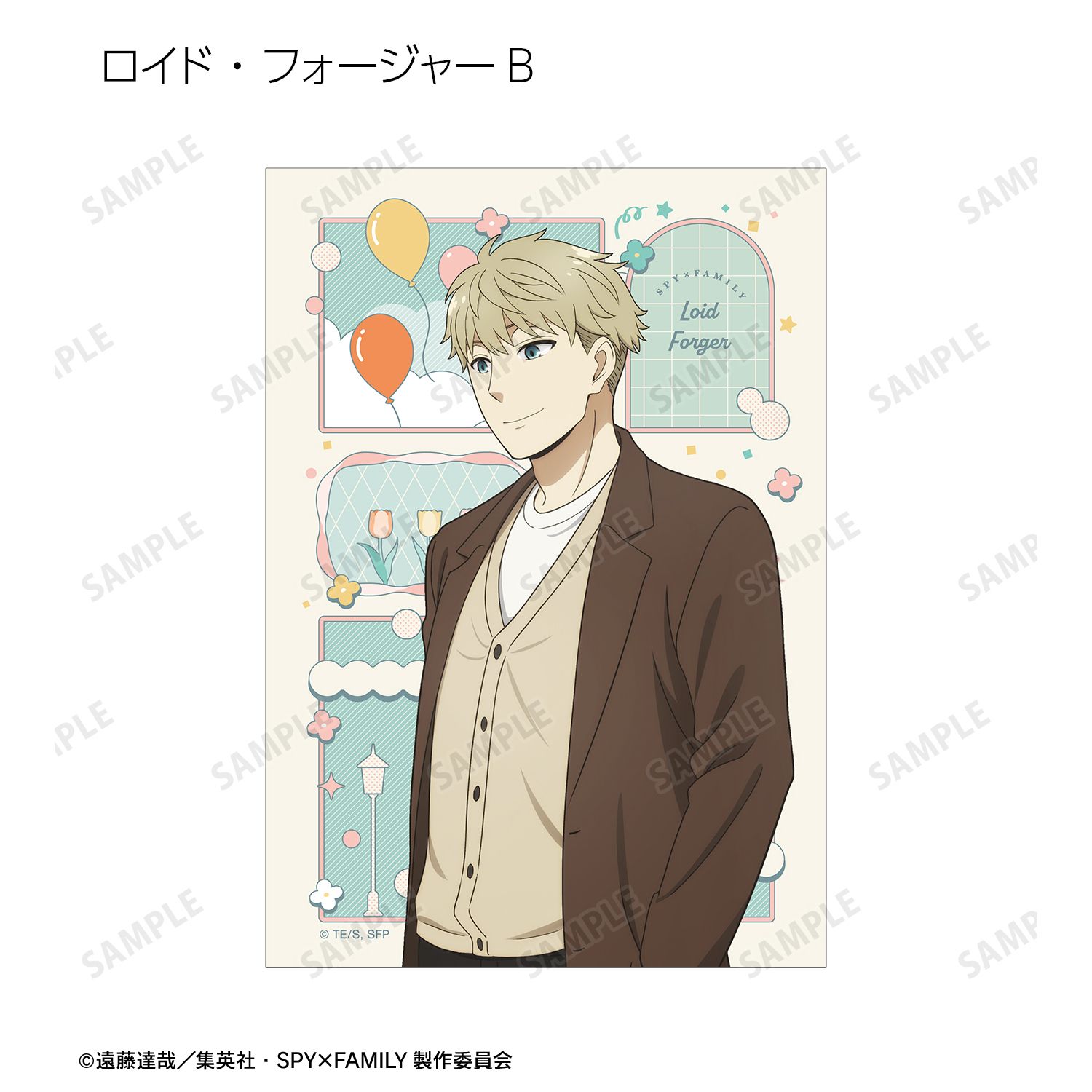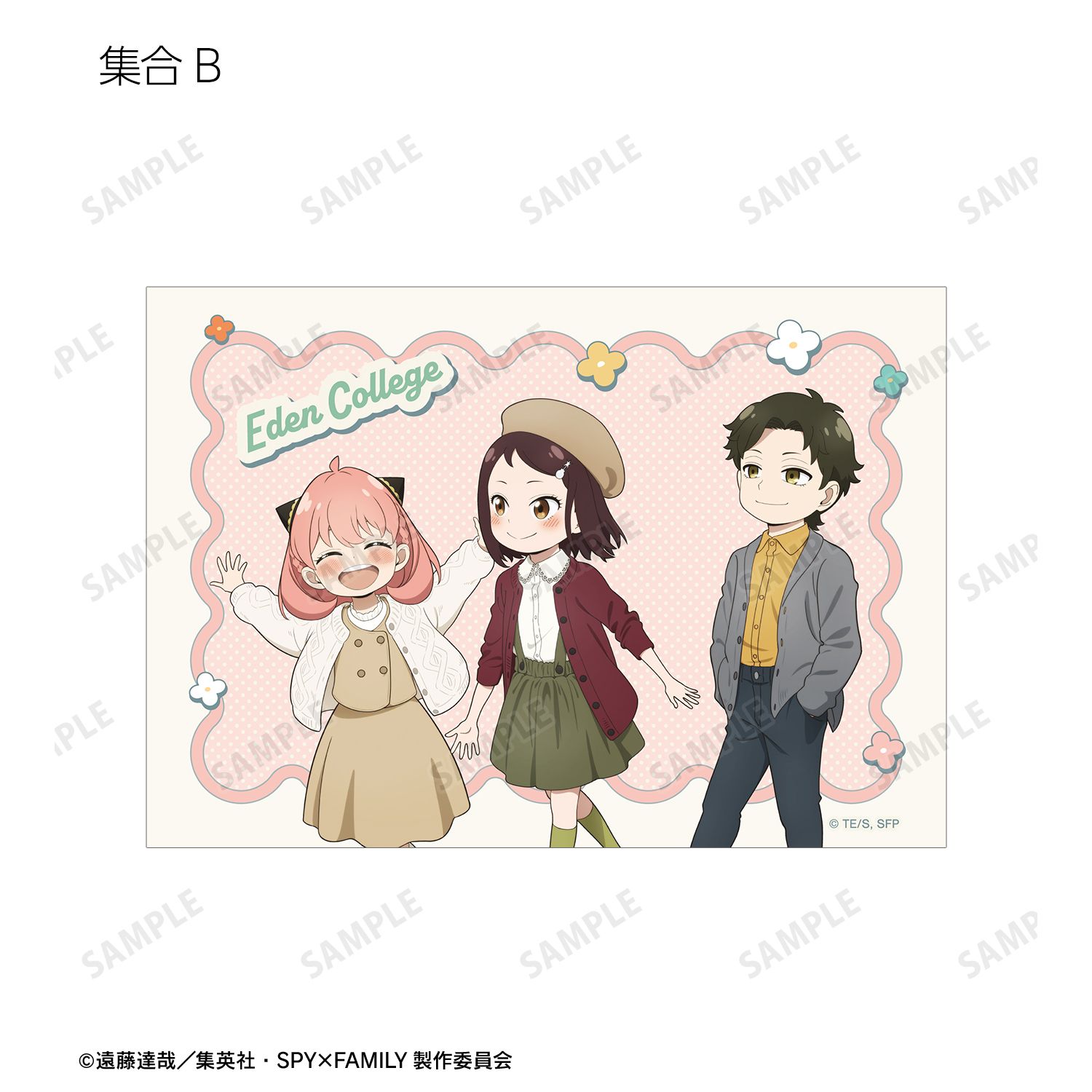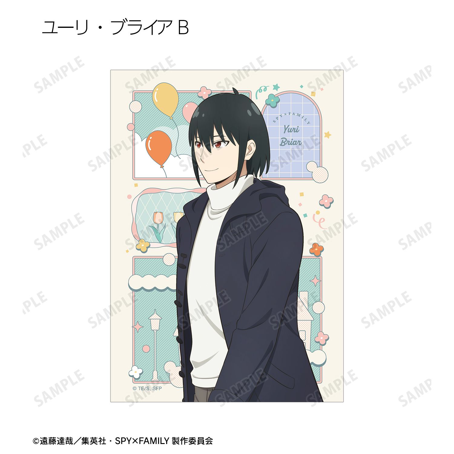 ロイド・フォージャー、アーニャ・フォージャー、ヨル・フォージャー、ボンド・フォージャー、ユーリ・ブライア、ダミアン・デズモンド、ベッキー・ブラックベルの描き下ろしイラストをブロマイドに仕上げました。
