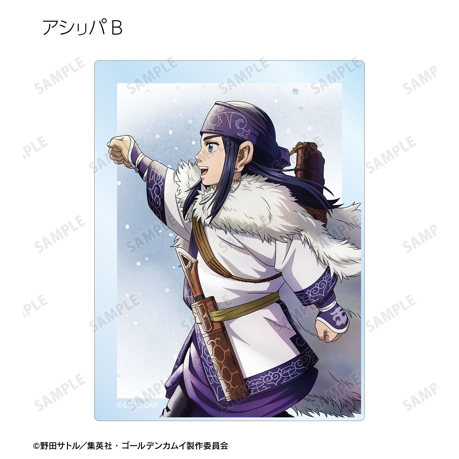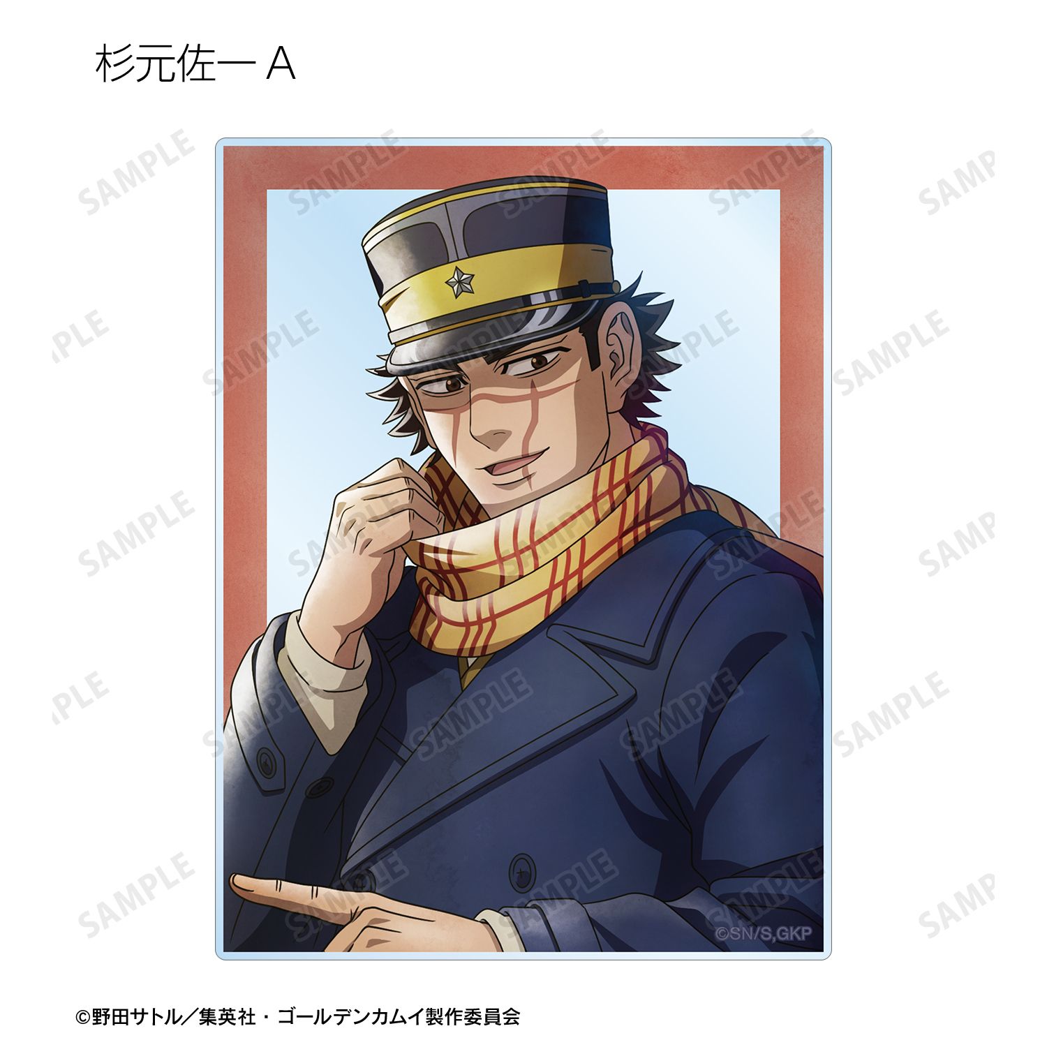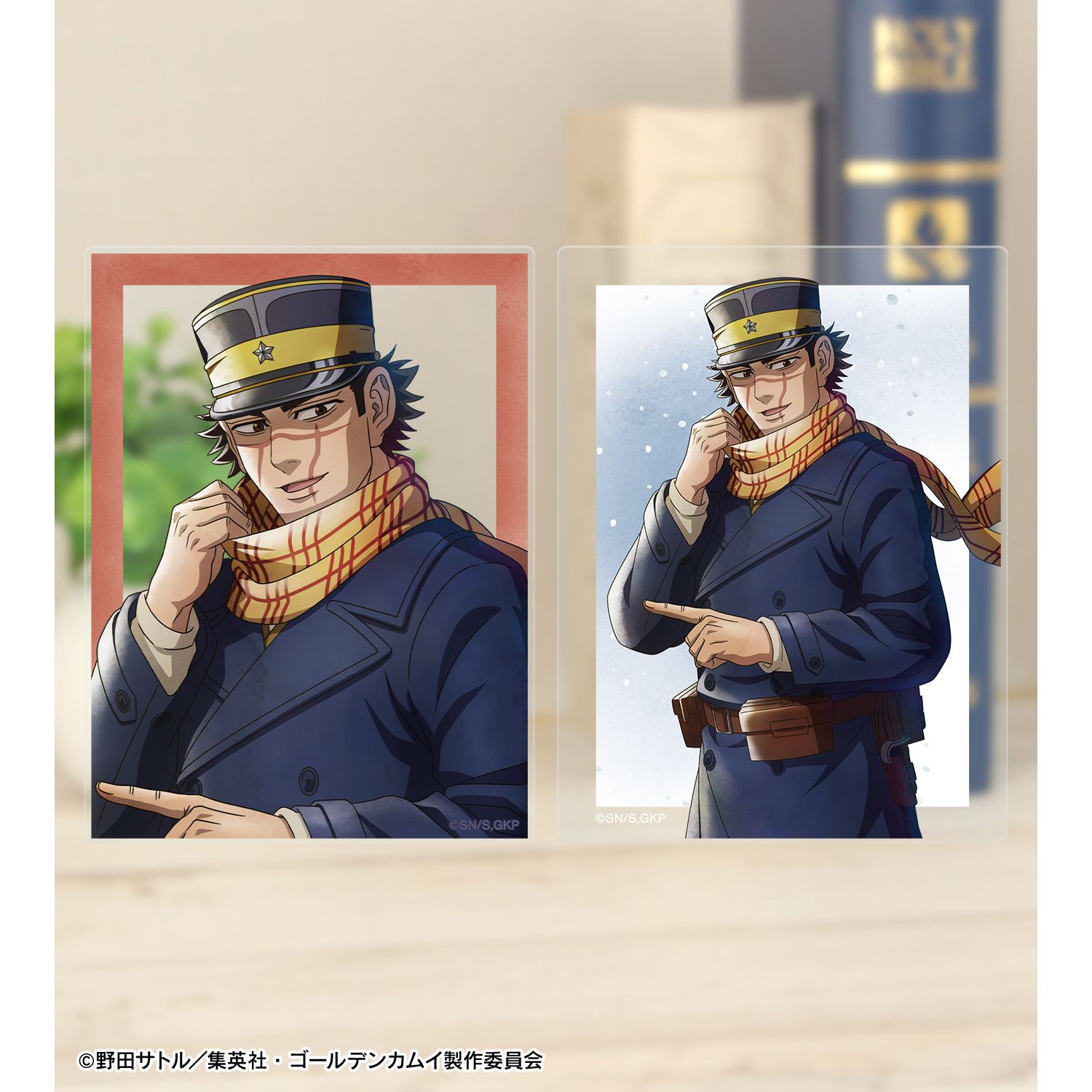 杉元佐一、アシ?パ、白石由竹、尾形百之助、月島軍曹、鯉登少尉の描き下ろしイラストをアクリルカードに仕上げました。