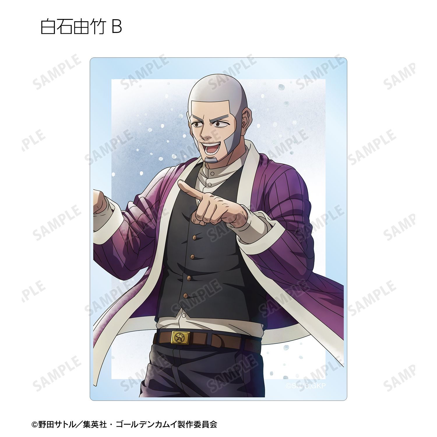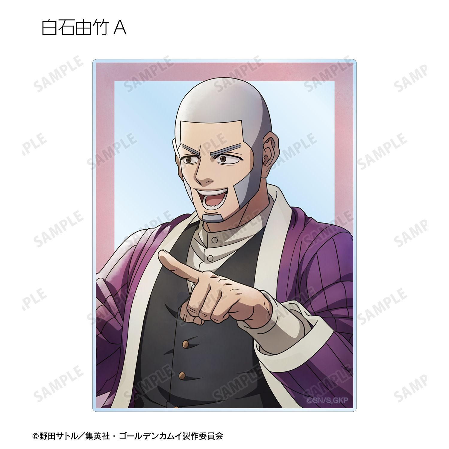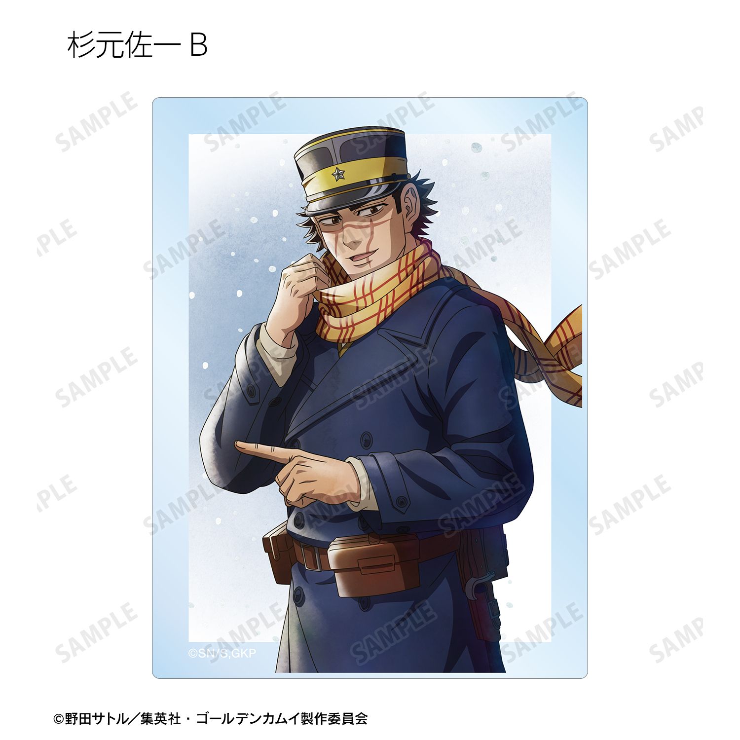 杉元佐一、アシ?パ、白石由竹、尾形百之助、月島軍曹、鯉登少尉の描き下ろしイラストをアクリルカードに仕上げました。