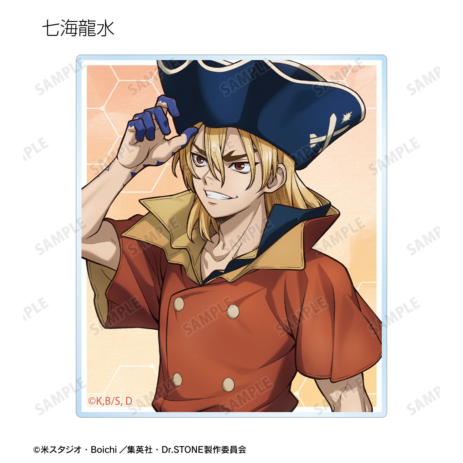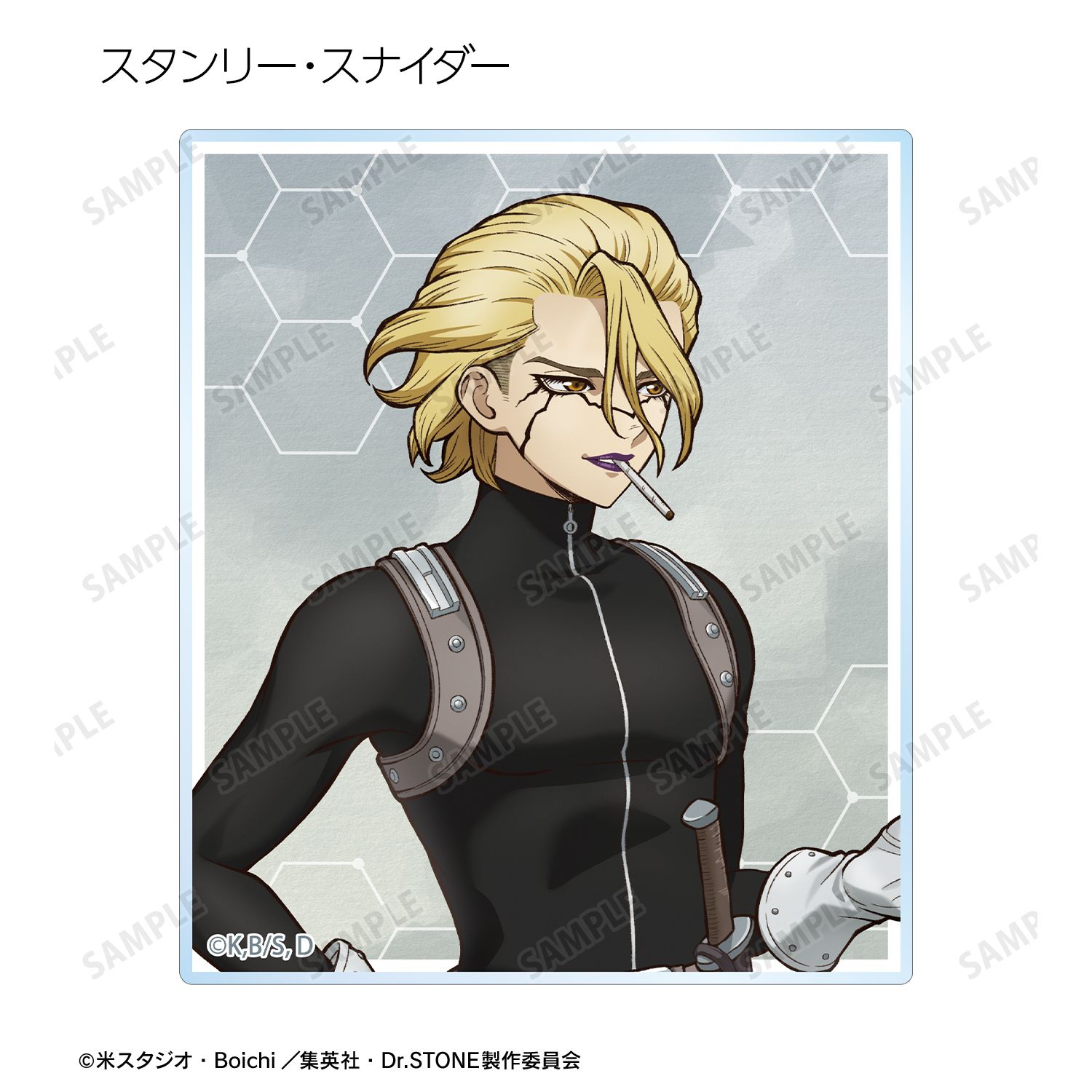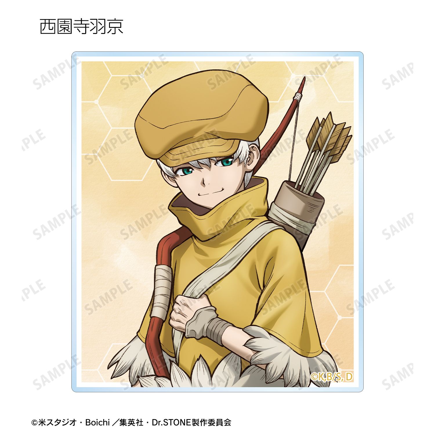 石神千空、あさぎりゲン、七海龍水、西園寺羽京、Dr.ゼノ、スタンリー・スナイダーの描き下ろしイラストをアクリルカードに仕上げました。