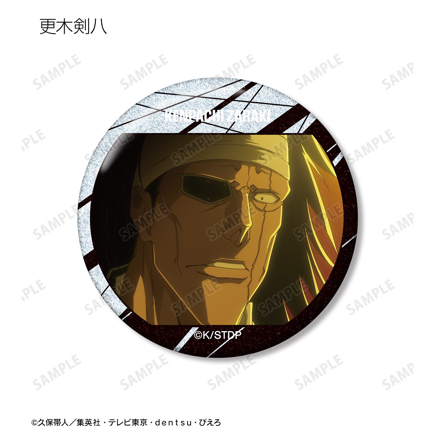 黒崎一護、浦原喜助、四楓院夜一、京楽春水、平子真子、阿散井恋次、更木剣八、涅マユリ、藍染惣右介、グリムジョー・ジャガージャック、毒ヶ峰リルカ、ユーハバッハ、石田雨竜、ユーグラム・ハッシュヴァルト、バズビーの印象的なシーンをグリッター加工を施した缶バッジに仕上げました。