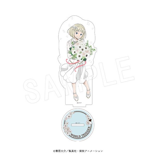 TVアニメ『ワールドトリガー』より、花束を抱えた描き下ろしイラストを使用したアクリルフィギュアスタンドが登場!!