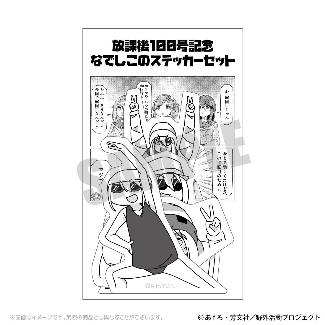 原作3巻から始まったの番外編の「放課後」シリーズが12巻で、100回記念した時にエピソード「山梨100名山」の作中のなでしこを4種類のシールにしました!