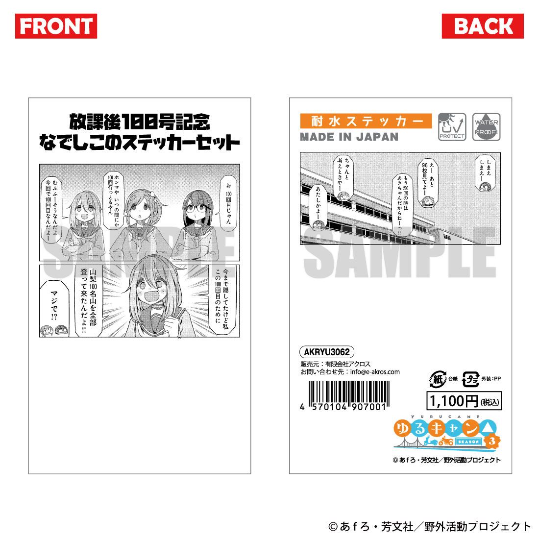 ゆるキャン△ SEASON3 放課後100号記念なでしこのステッカーセット