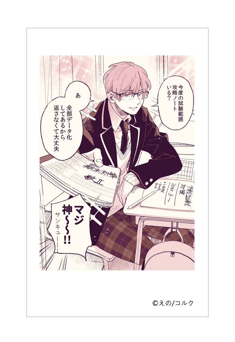 『口の悪い男子校マネージャーのサポート力が凄すぎる』より描き下ろしイラストと原作絵を使用した「フォト風カード」が全10種類で登場です。