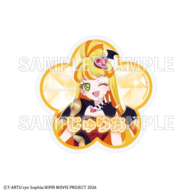 「映画ひみつのアイプリ まんかいバズリウムライブ!」のキービジュアルを使用したアクリルバッジです。