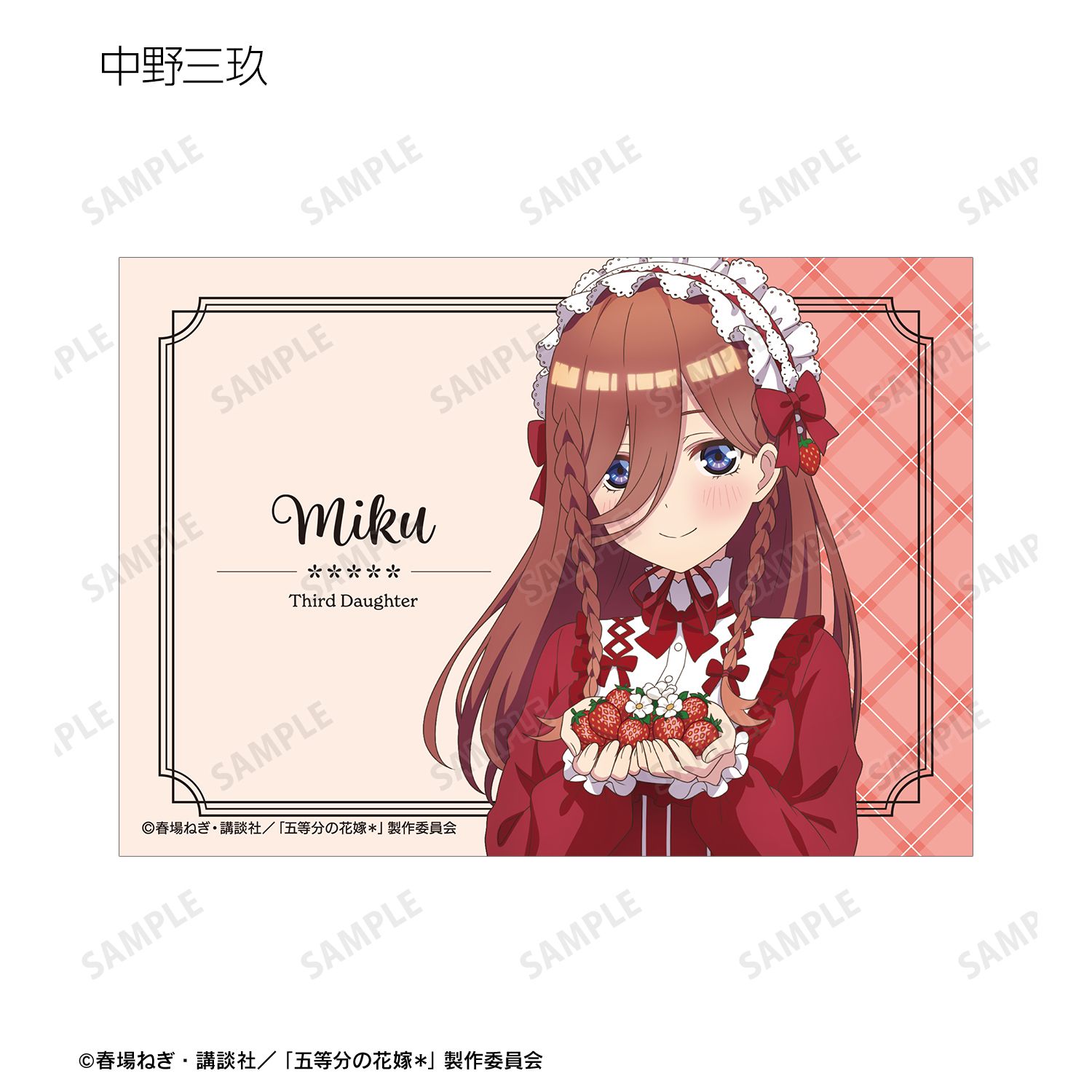 中野一花、中野二乃、中野三玖、中野四葉、中野五月の描き下ろしイラストをブロマイド5枚セットに仕上げました。