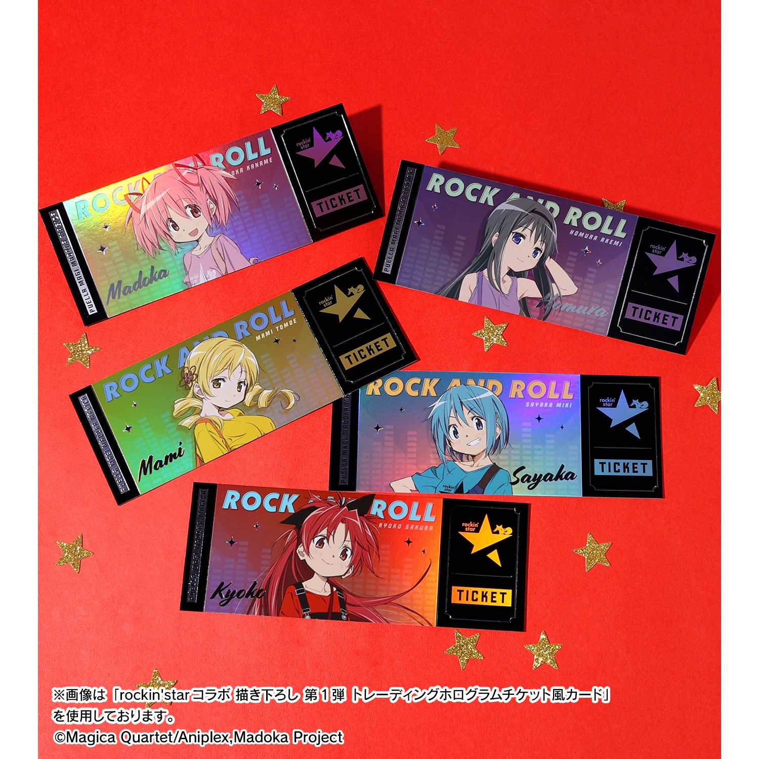 「rockin’star★」×TVアニメ「魔法少女まどか☆マギカ」のコラボレーションアイテム「rockin'starコラボ 描き下ろし 第2弾 トレーディングホログラムチケット風カード」の登場です。