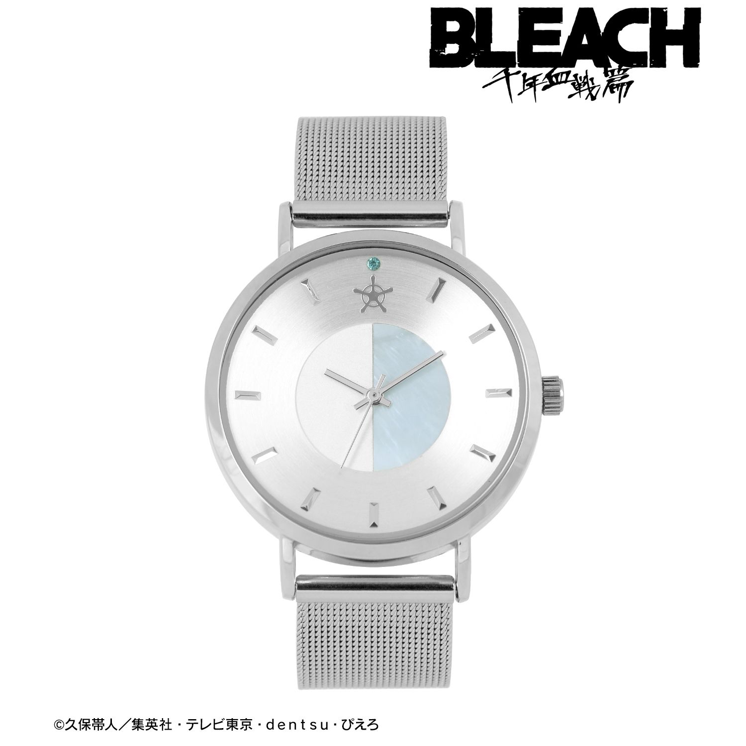 12時の位置には、クインシークロスの銀メッキに水色のストーンを配置し、石田雨竜の滅却師としての姿をイメージしたカラーリングに仕上げました。