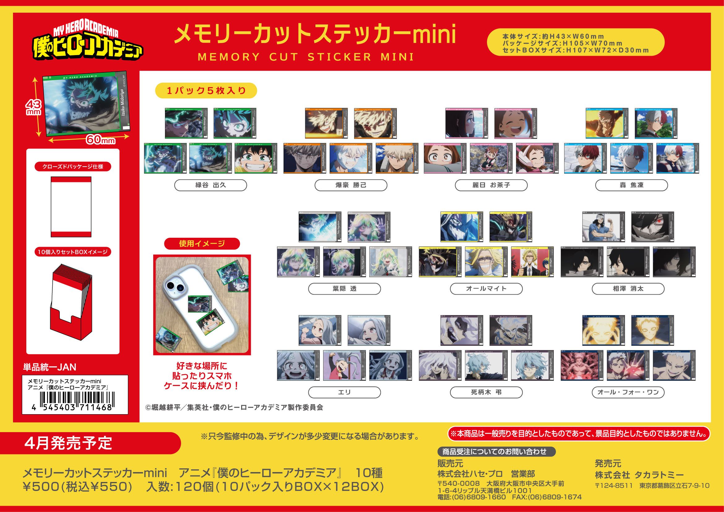 アニメ 僕のヒーローアカデミア メモリーカットステッカーmini 10個入り1BOX