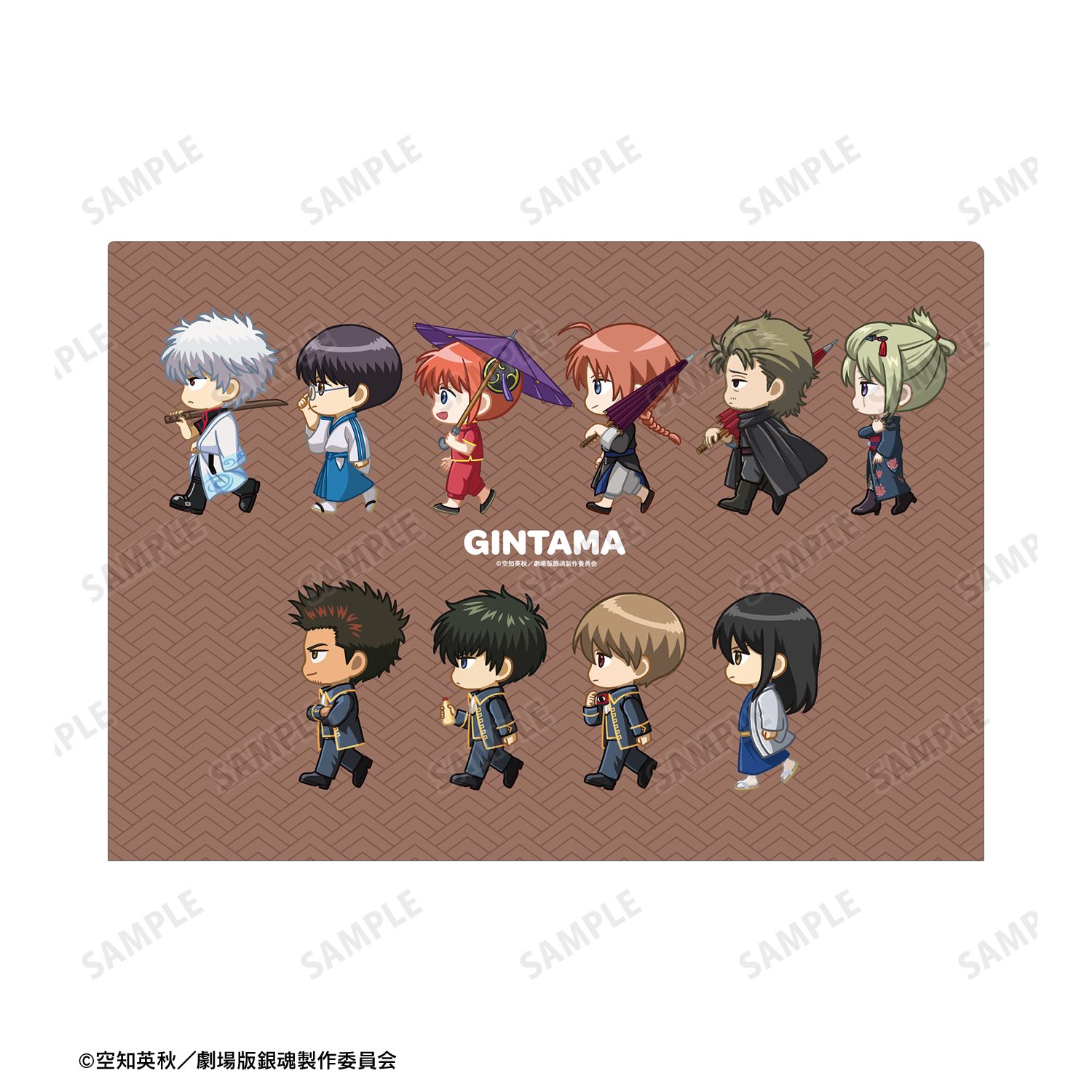 坂田銀時、志村新八、神楽、神威、阿伏兎、月詠、近藤勲、土方十四郎、沖田総悟、桂小太郎が歩いているちびキャラを新たに描き起こし、クリアファイルに仕上げました。