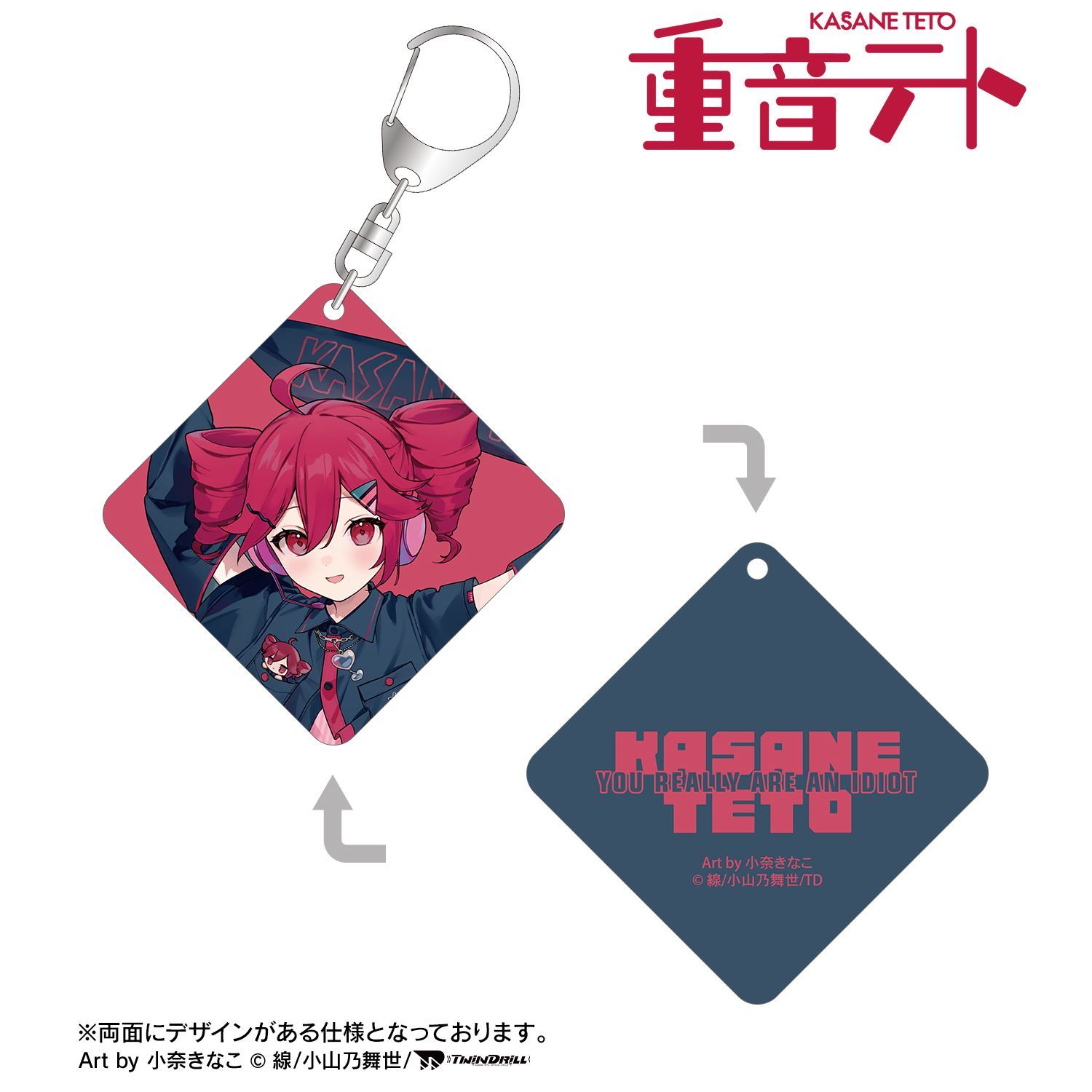 小奈きなこさん描き下ろしイラストの重音テトを両面貼り合わせアクリルキーホルダーに仕上げました。