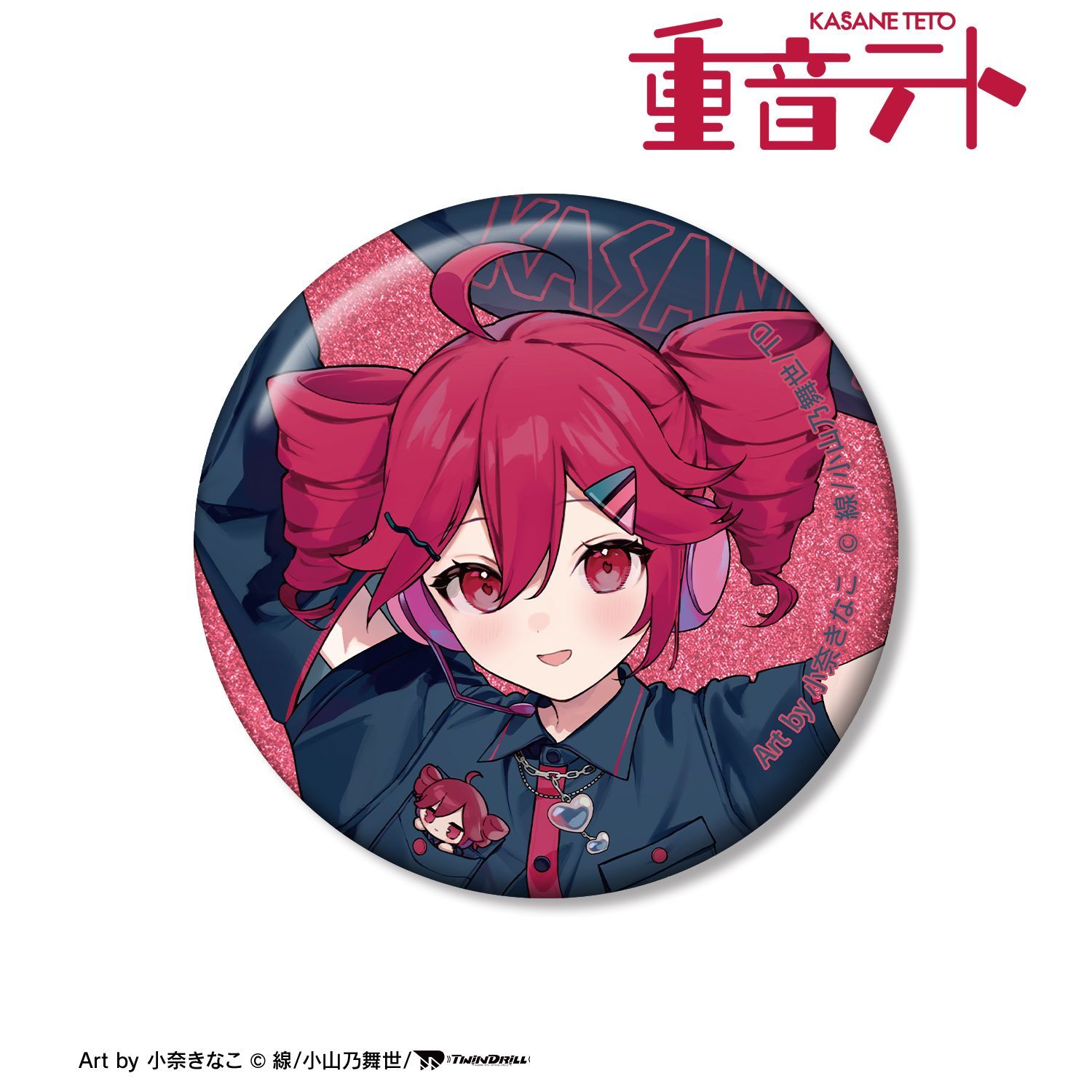 小奈きなこさん描き下ろしイラストの重音テトをグリッター加工を施した缶バッジに仕上げました。